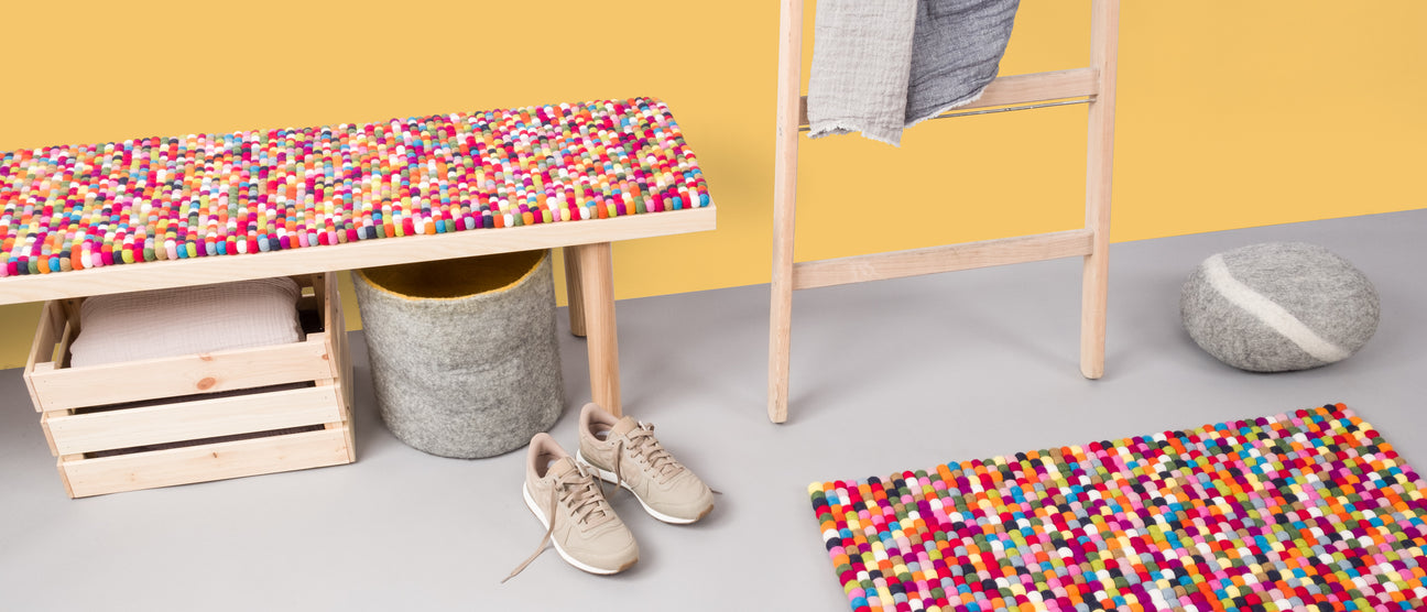 I cuscini per seduta e panca myfelt in feltro arricchiscono il corridoio con la loro morbidezza e lo speciale comfort di seduta. I posti a sedere nel corridoio sono visivamente valorizzati dagli attraenti cuscini in feltro. Disponibili in molti colori e dimensioni diversi, i cuscini della seduta e della panca in feltro possono essere combinati con stile. Sia in un colore caldo naturale che in tonalità forti che attirano l'attenzione: i feltrini convincono anche per la loro lunga durata e la tradizionale lavorazione artigianale. Oltre alle dimensioni standard, myfelt consente anche qualsiasi dimensione personalizzata desiderata per i coprisedili con palline di feltro per un'esperienza di seduta su misura.