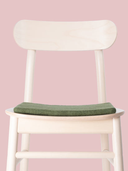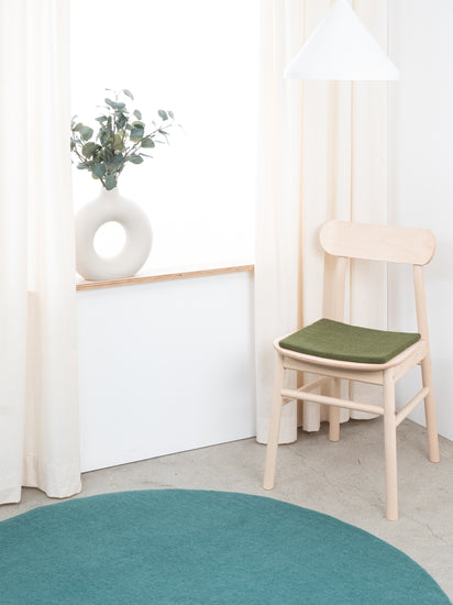Quadratische, dunkelgrüne flache Sitzauflage aus reiner Schurwolle.