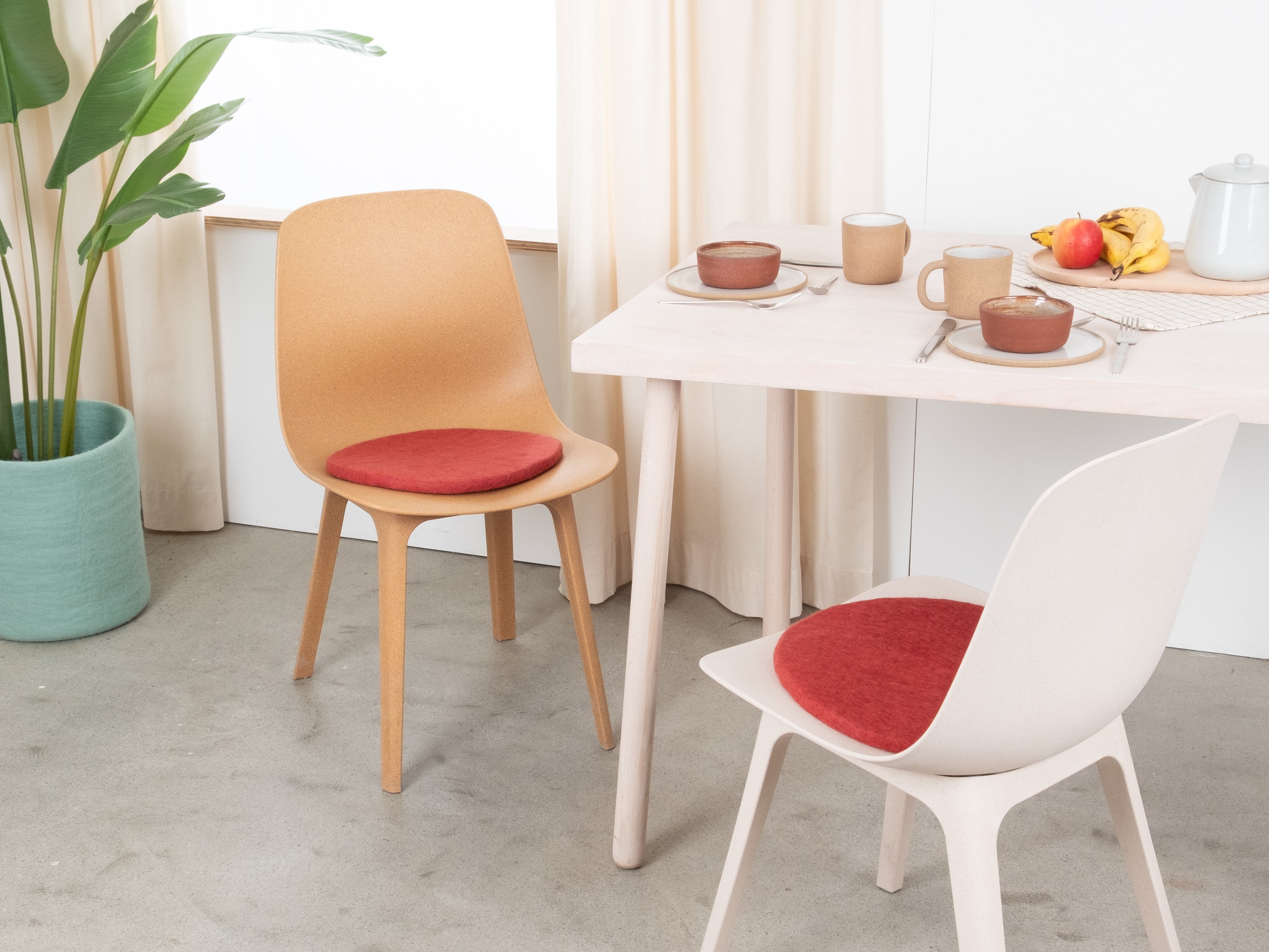 Il cuscino da sedia rosso vino, piatto, Kaja porta calore e morbidezza sulla tua sedia preferita. Realizzato in pura lana vergine, fatto a mano in Nepal e prodotto in condizioni eque. I cuscini da sedia myfelt sono idrorepellenti e resistenti allo sporco e possono essere utilizzati su entrambi i lati.