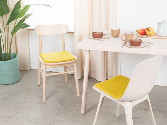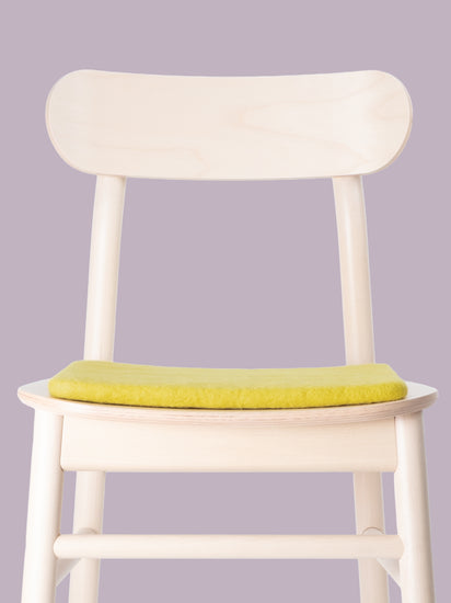 Il cuscino da sedia giallo-verde, piatto, Kata porta calore e morbidezza sulla tua sedia preferita. Realizzato in pura lana vergine, fatto a mano in Nepal e prodotto in condizioni eque. I cuscini da sedia myfelt sono idrorepellenti e resistenti allo sporco e possono essere utilizzati su entrambi i lati.