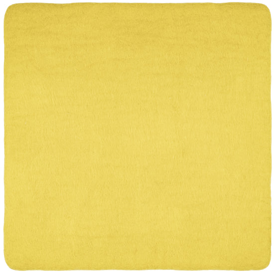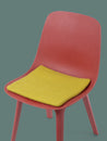 Quadratische, grüngelbe flache Sitzauflage aus reiner Schurwolle.