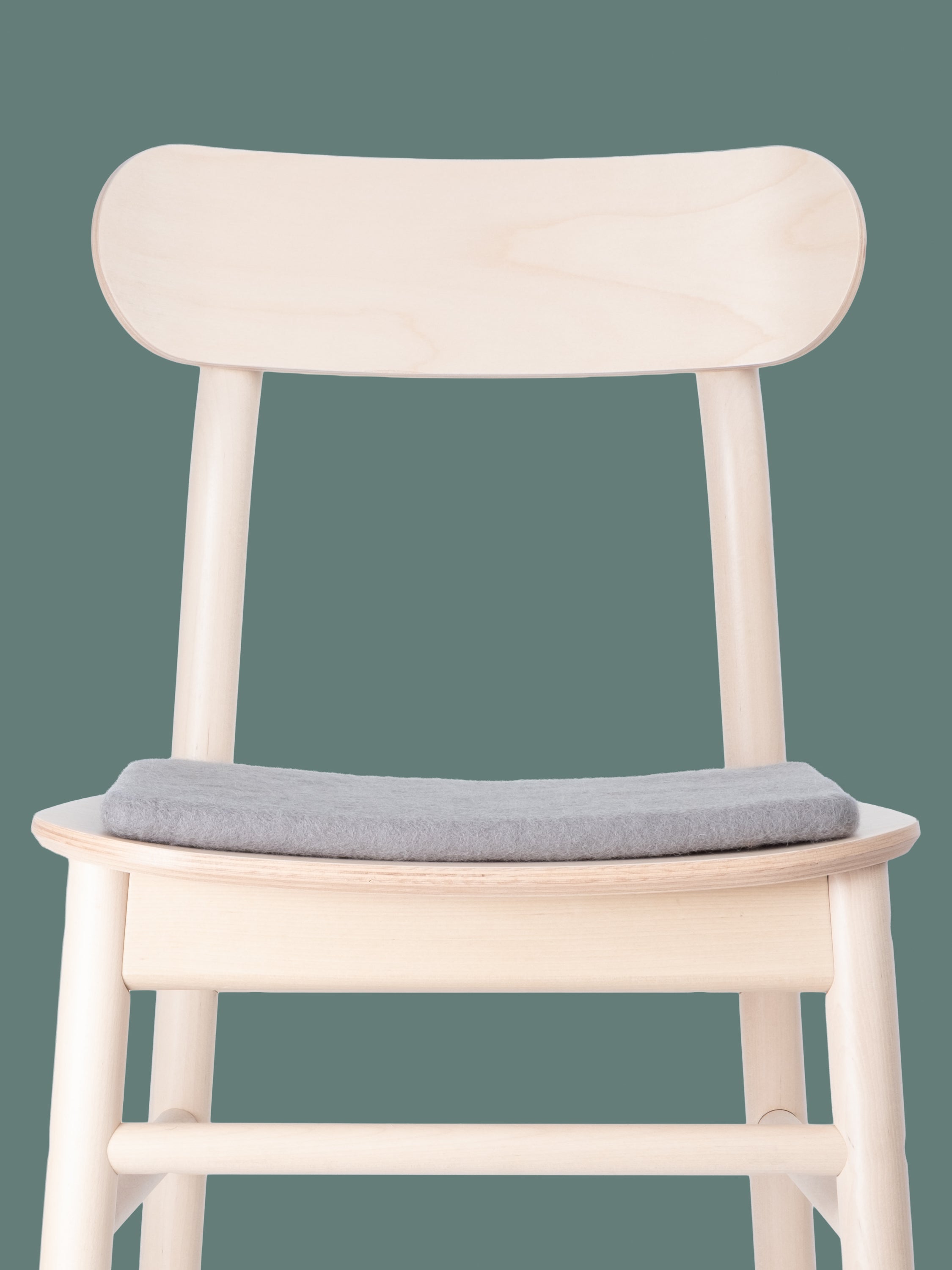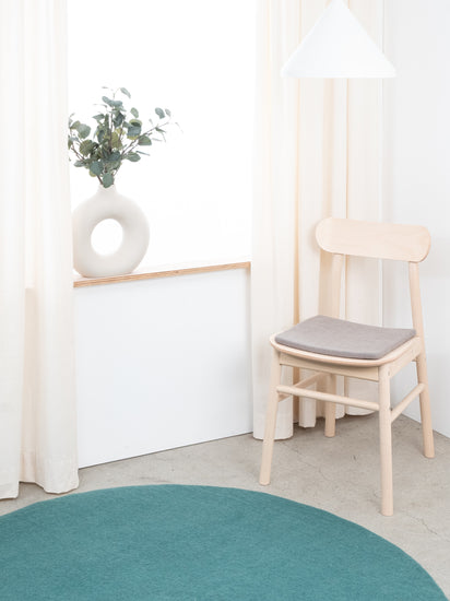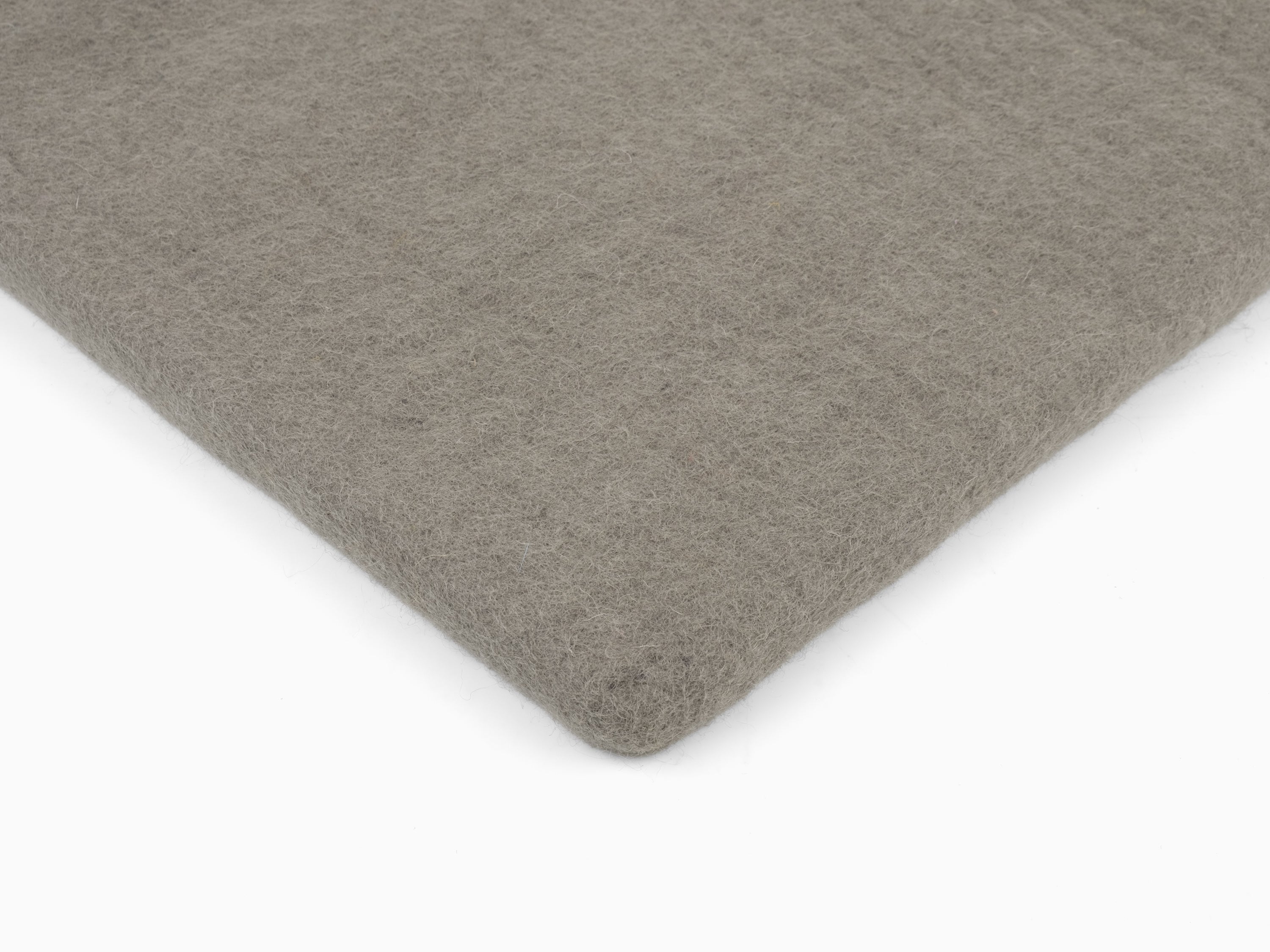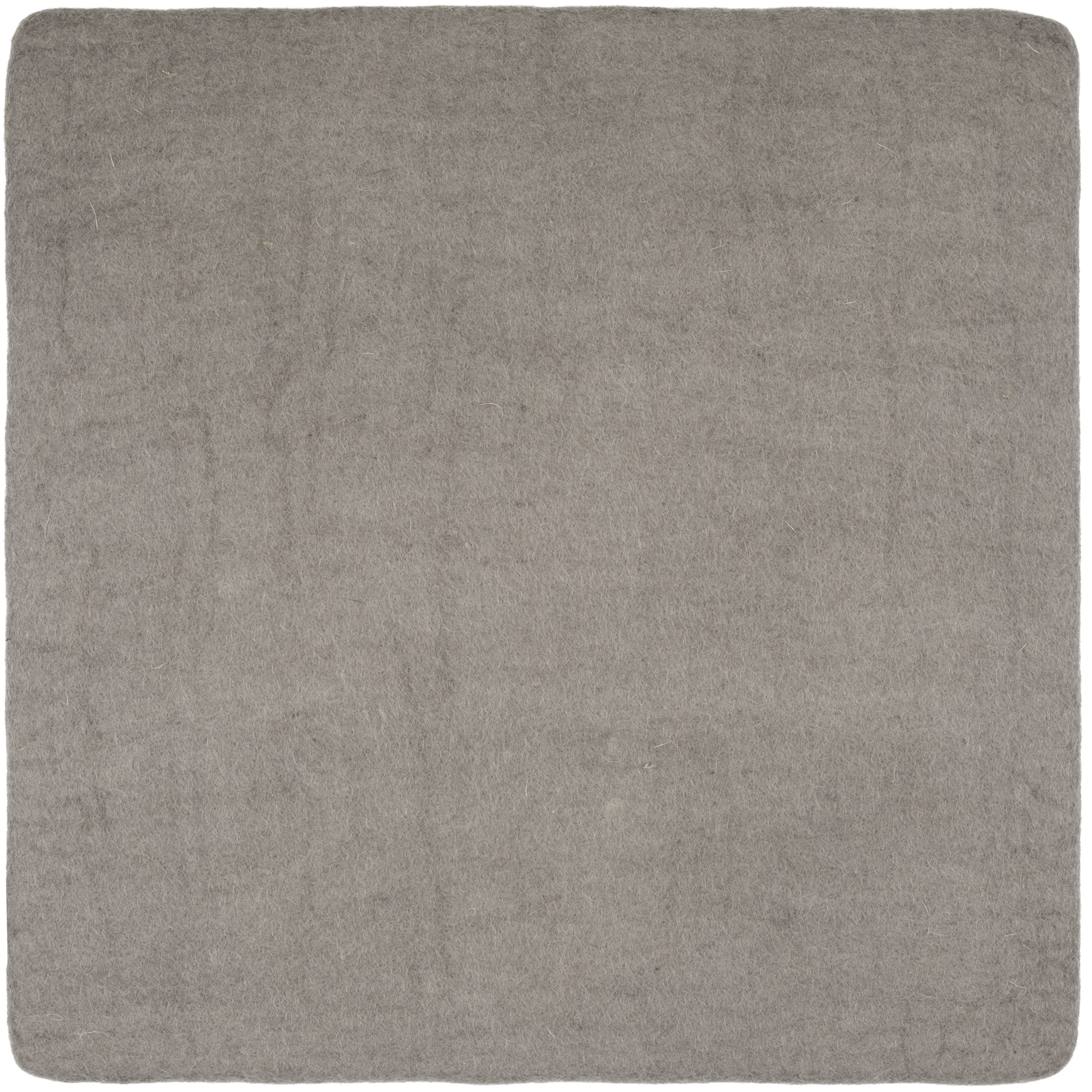 Quadratische, graue flache Sitzauflage aus reiner Schurwolle.
