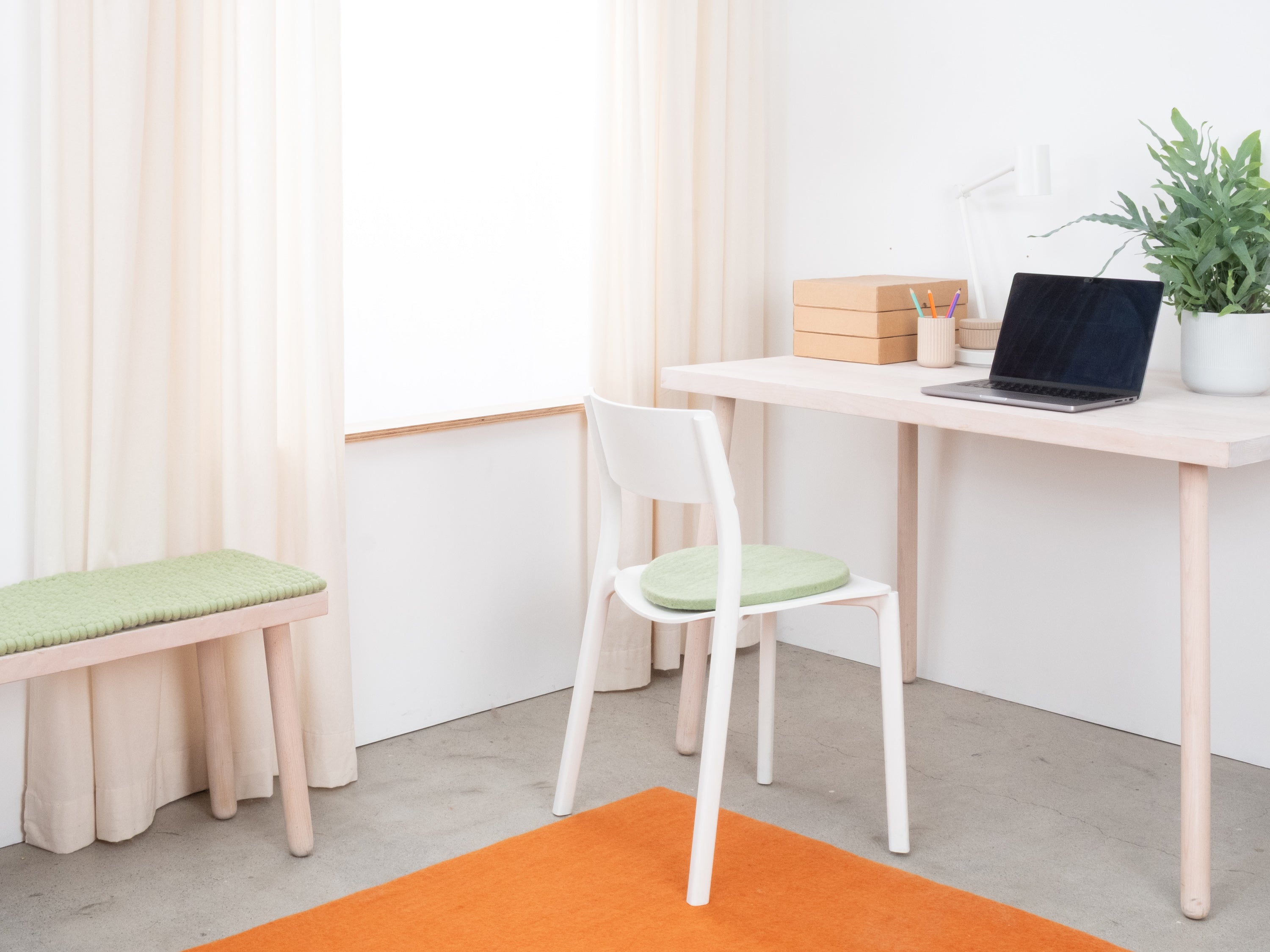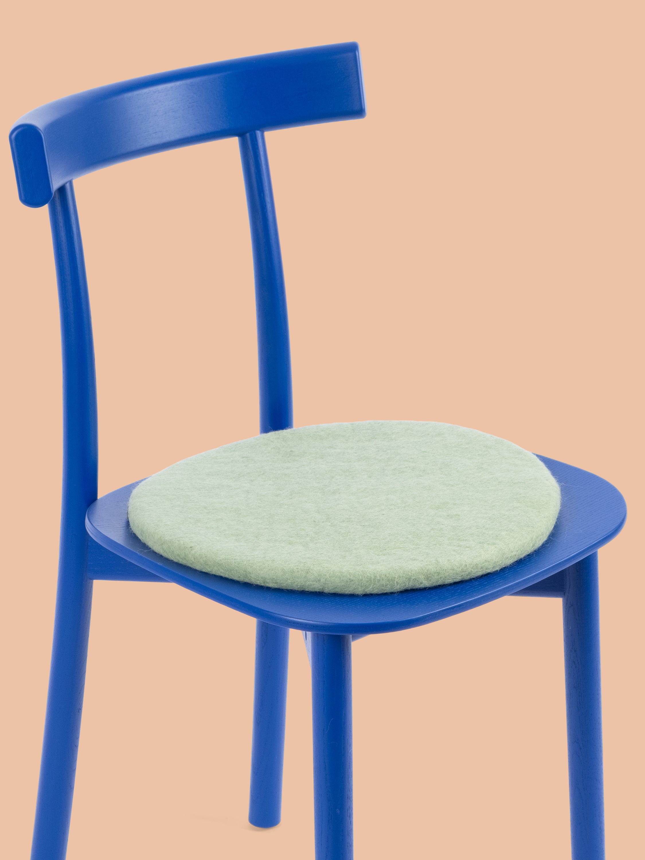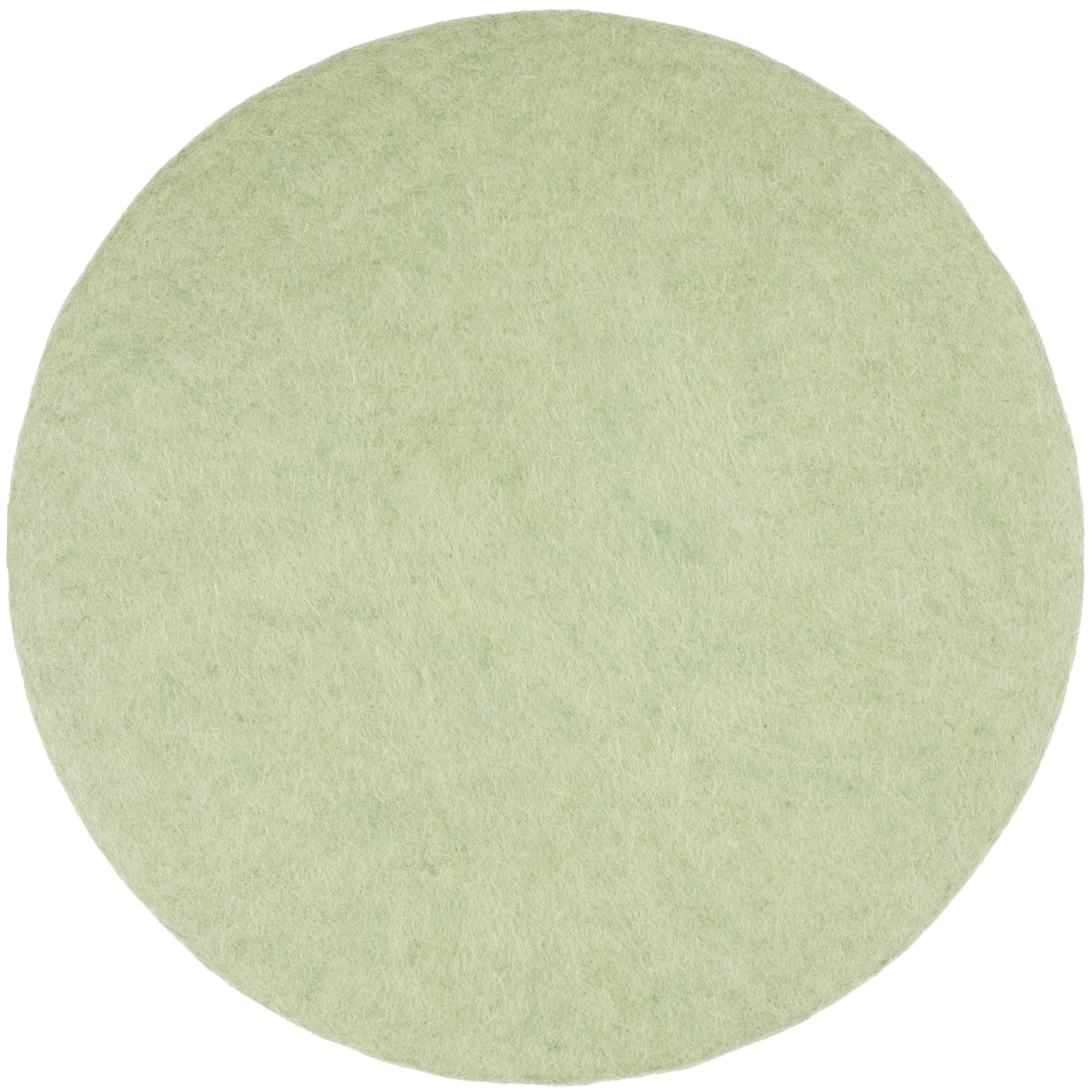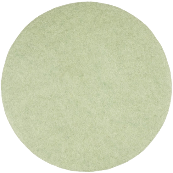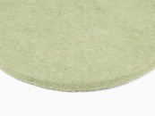 Runde, hellgrüne flache Sitzauflage aus reiner Schurwolle.