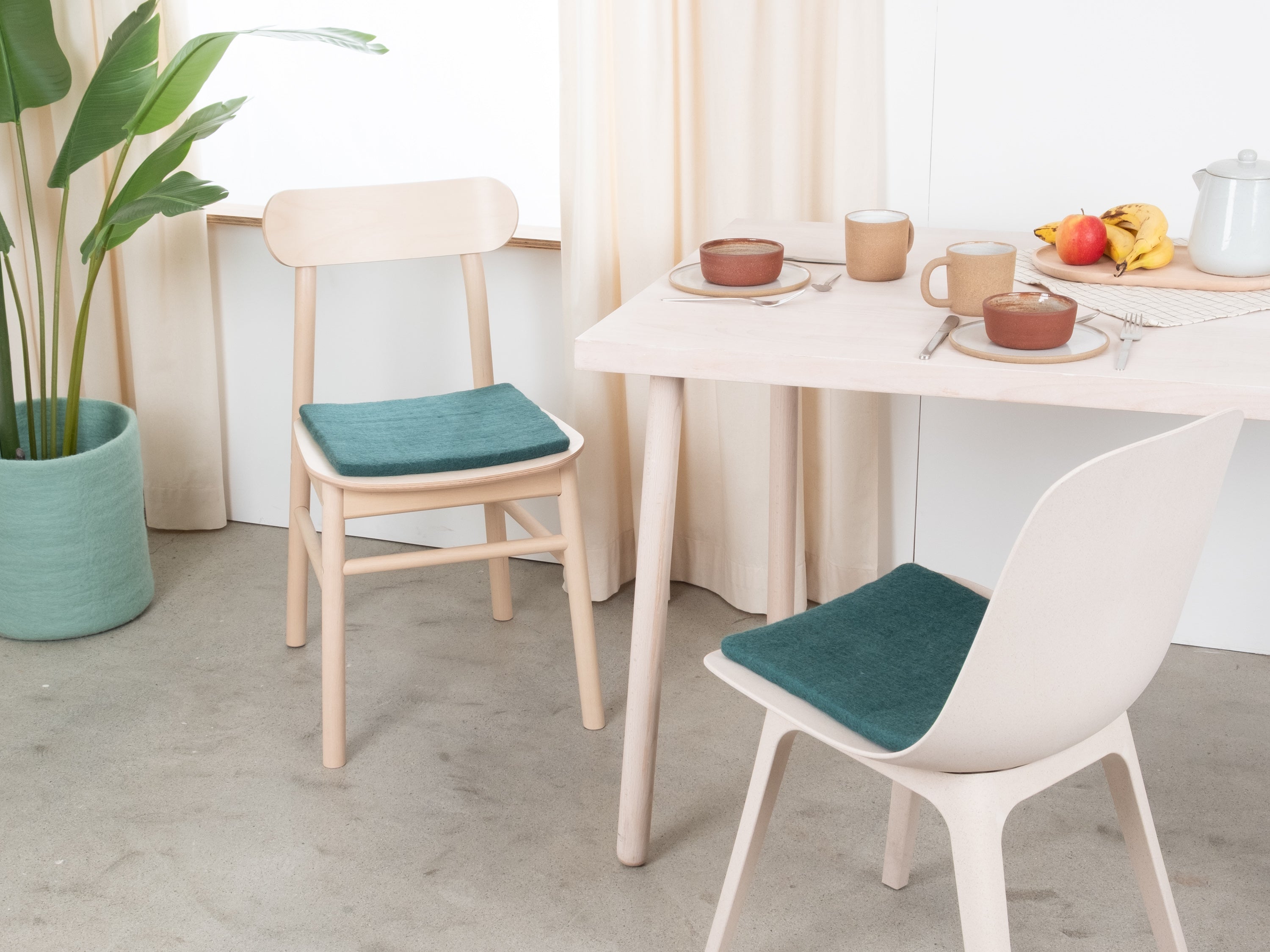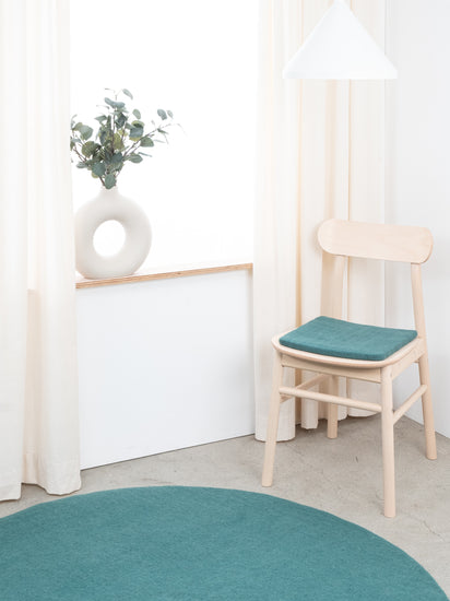 Il cuscino da sedia color petrolio, piatto, Noah porta calore e morbidezza sulla tua sedia preferita. Realizzato in pura lana vergine, fatto a mano in Nepal e prodotto in condizioni eque. I cuscini da sedia myfelt sono idrorepellenti e resistenti allo sporco e possono essere utilizzati su entrambi i lati.