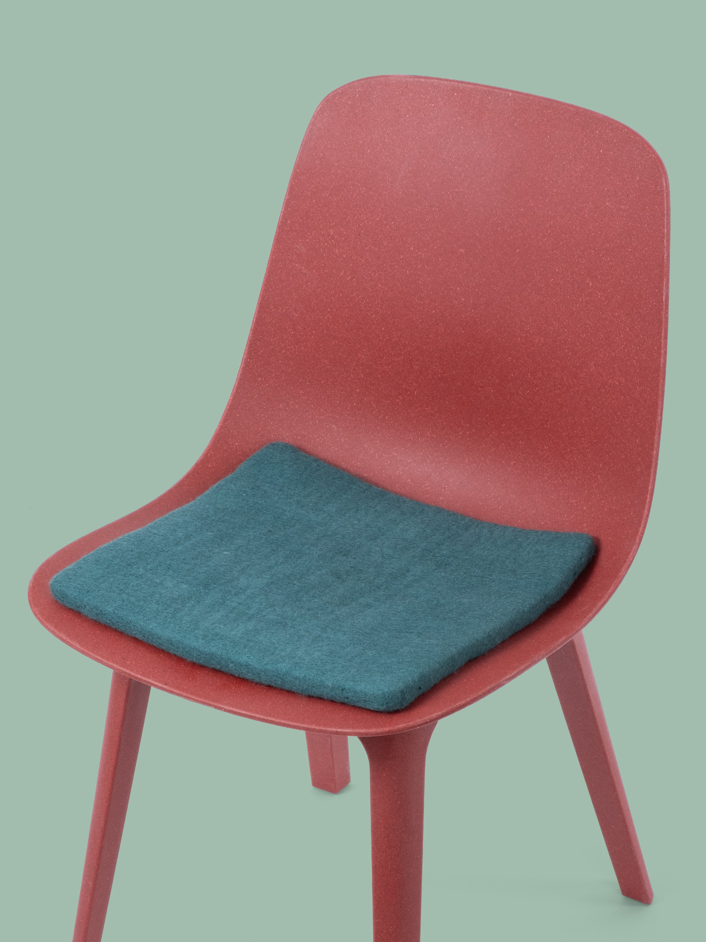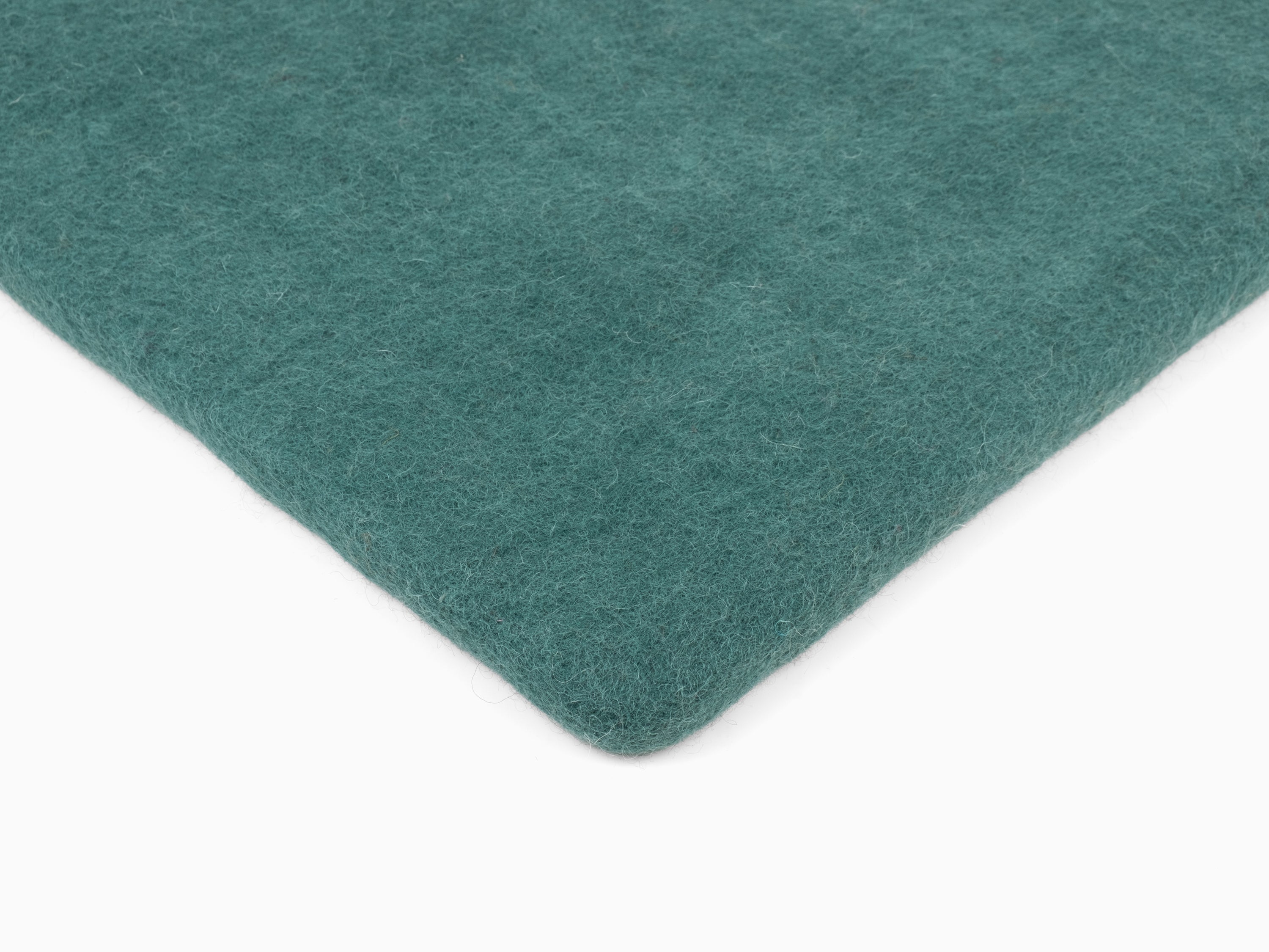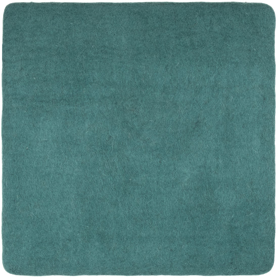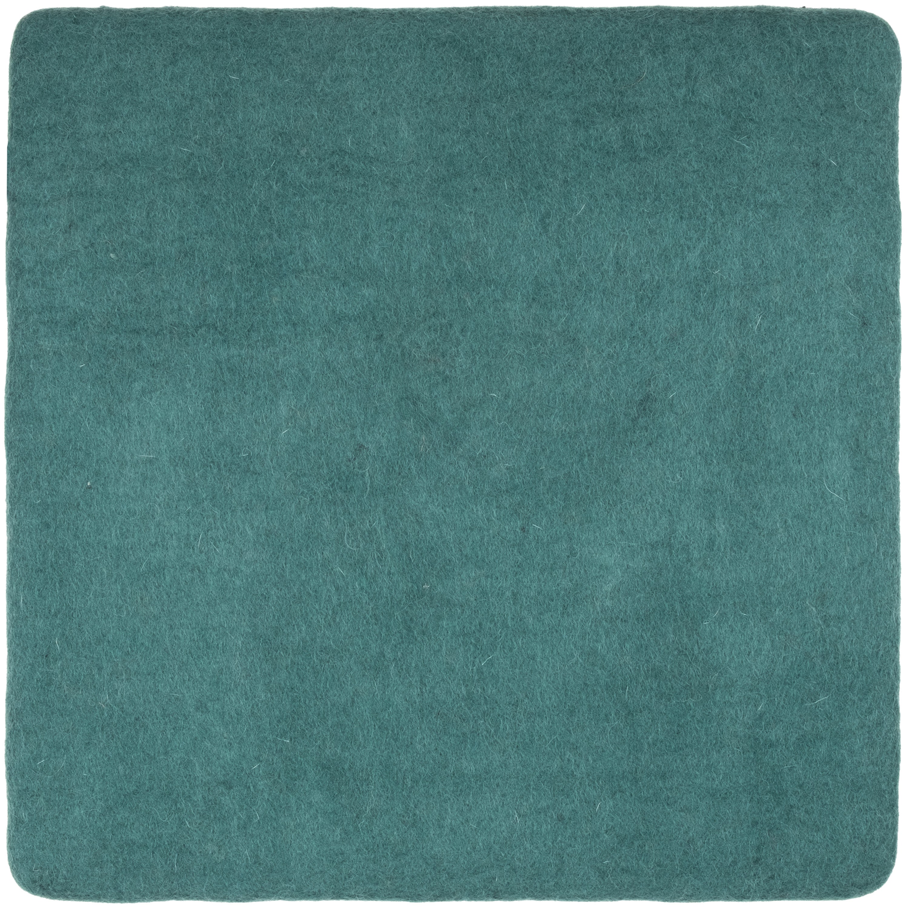 Quadratische, petrolfarbene flache Sitzauflage aus reiner Schurwolle.