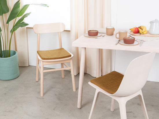 Il cuscino da sedia color caramello, piatto, Omar porta calore e morbidezza sulla tua sedia preferita. Realizzato in pura lana vergine, fatto a mano in Nepal e prodotto in condizioni eque. I cuscini da sedia myfelt sono idrorepellenti e resistenti allo sporco e possono essere utilizzati su entrambi i lati.
