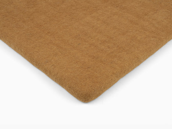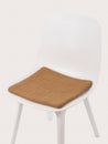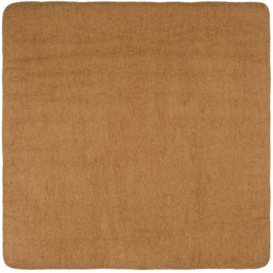 Quadratische, karamellfarbene flache Sitzauflage aus reiner Schurwolle.