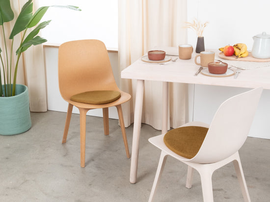 Il cuscino da sedia color caramello, piatto, Omar porta calore e morbidezza sulla tua sedia preferita. Realizzato in pura lana vergine, fatto a mano in Nepal e prodotto in condizioni eque. I cuscini da sedia myfelt sono idrorepellenti e resistenti allo sporco e possono essere utilizzati su entrambi i lati.