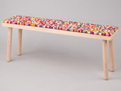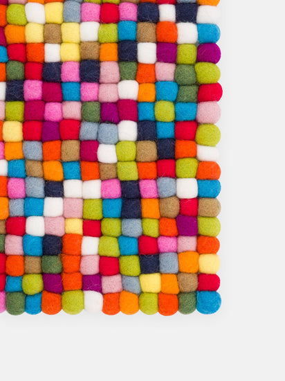 Cuscino da panca con palline di feltro multicolore realizzato in lana vergine nella dimensione desiderata.