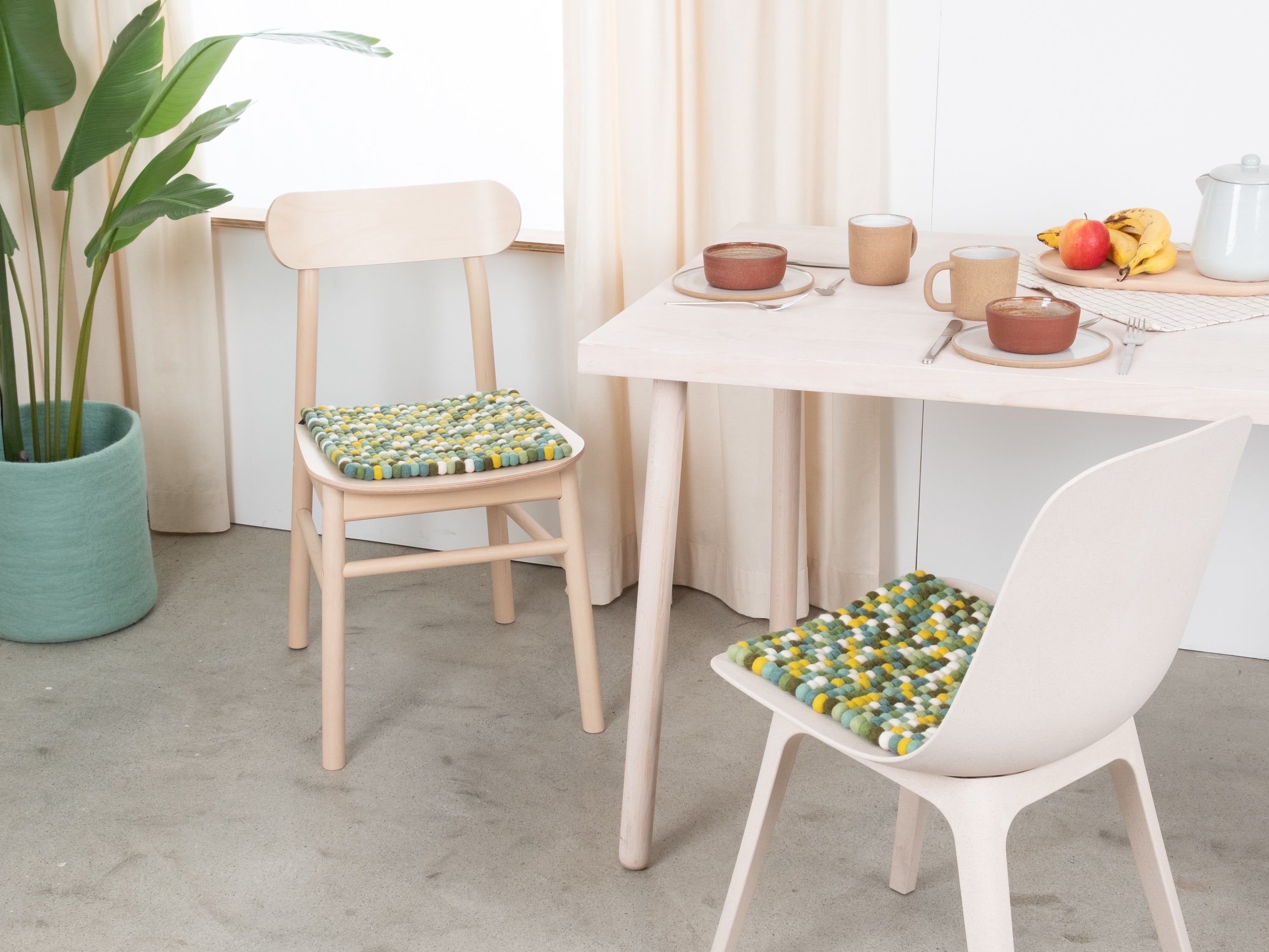 Il cuscino da sedia multicolore Finn porta calore e morbidezza sulla tua sedia preferita. Realizzato in pura lana vergine, fatto a mano in Nepal e prodotto in condizioni eque. I cuscini da sedia myfelt sono idrorepellenti e resistenti allo sporco e possono essere utilizzati su entrambi i lati.