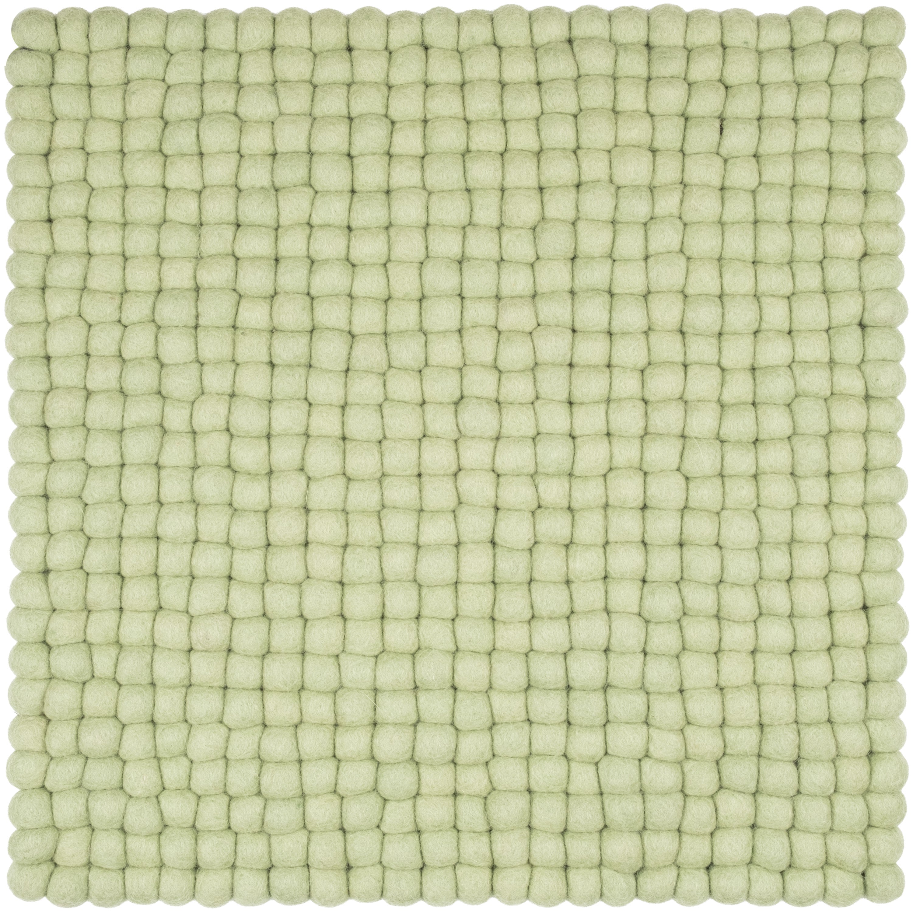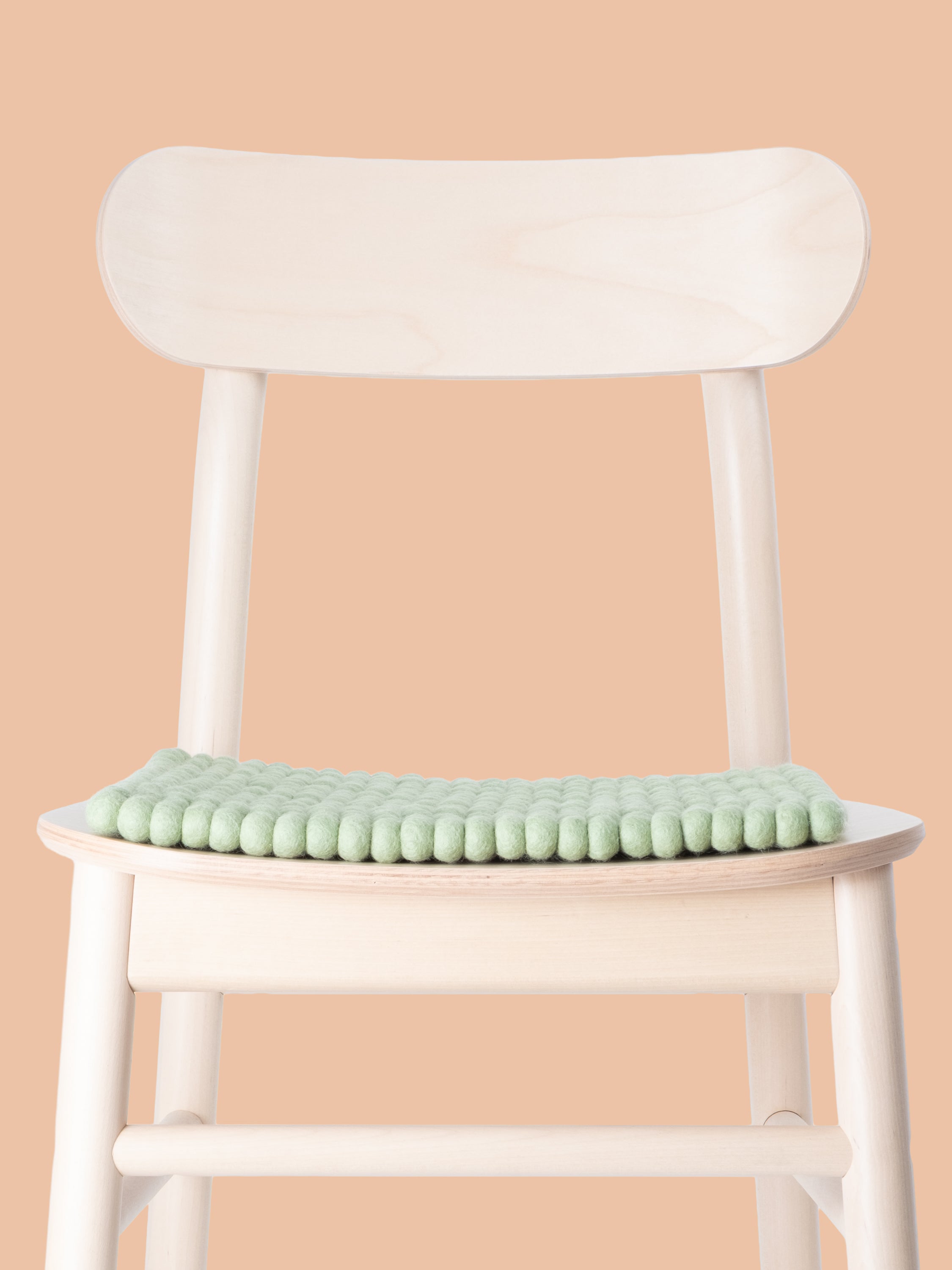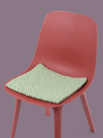 Quadratische, hellgrüne Sitzauflage aus reiner Schurwolle.