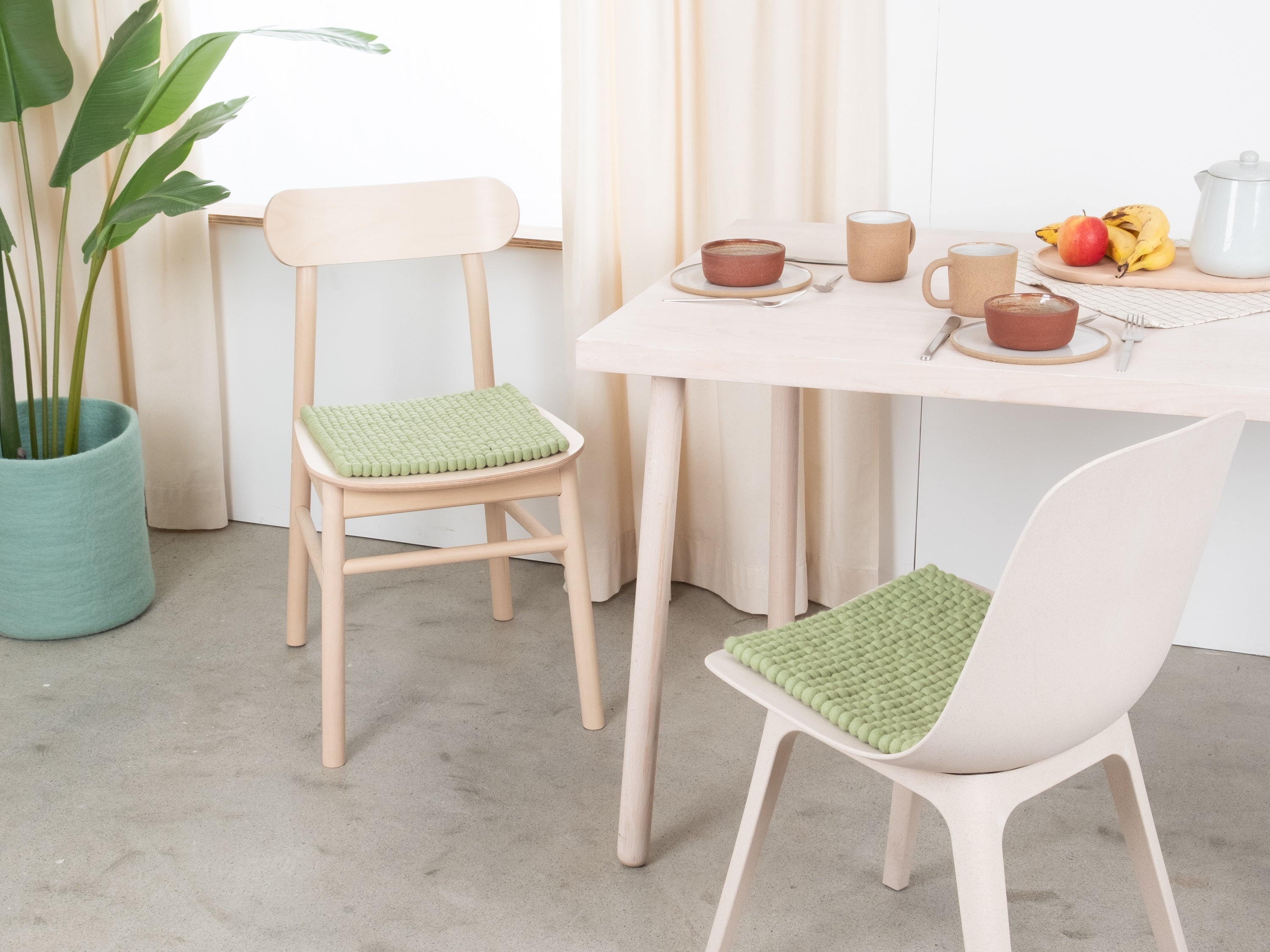Il cuscino da sedia verde chiaro Lasse porta calore e morbidezza sulla tua sedia preferita. Realizzato in pura lana vergine, fatto a mano in Nepal e prodotto in condizioni eque. I cuscini da sedia myfelt sono idrorepellenti e resistenti allo sporco e possono essere utilizzati su entrambi i lati.