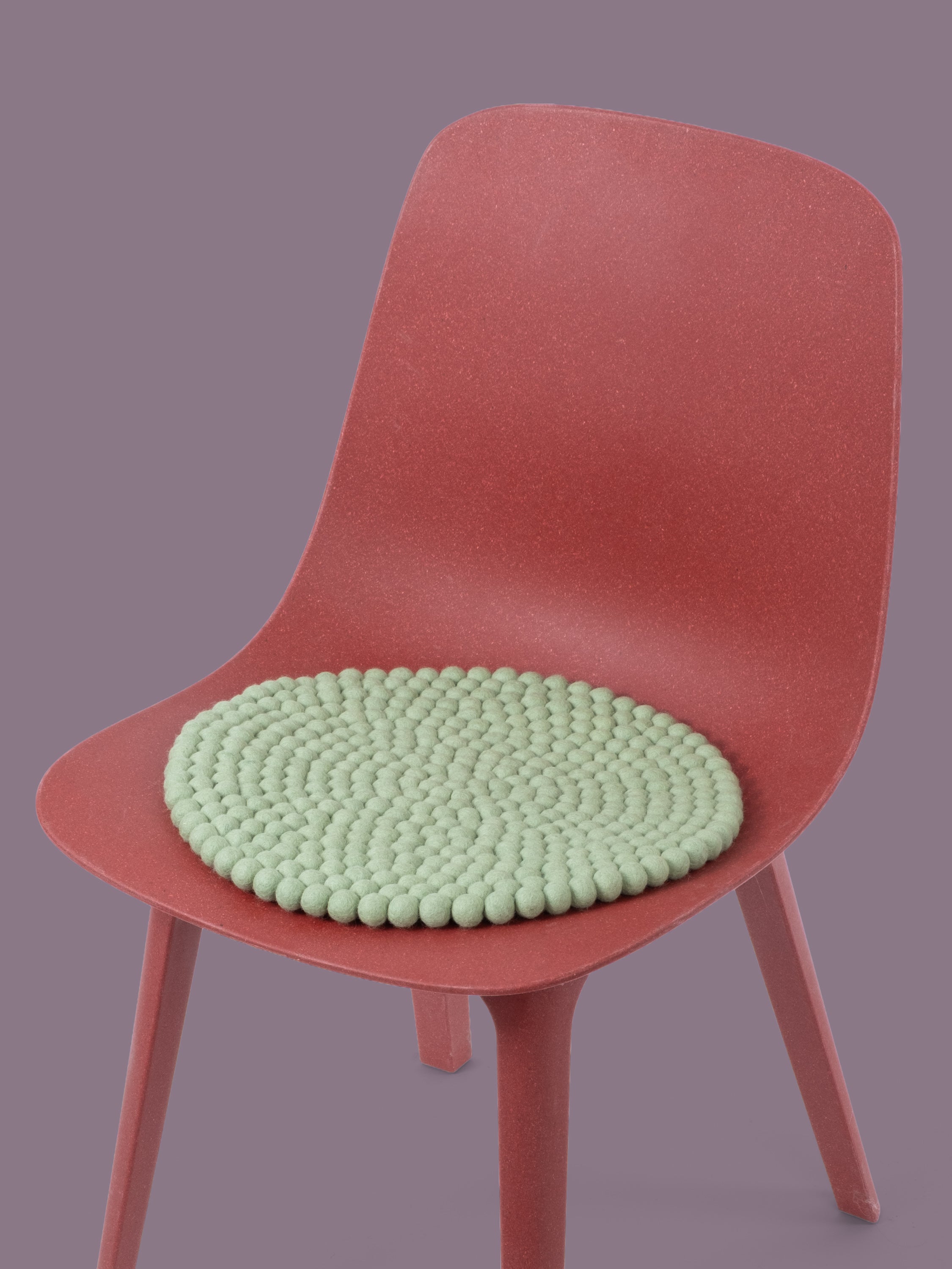 Runde, hellgrüne Sitzauflage aus reiner Schurwolle.