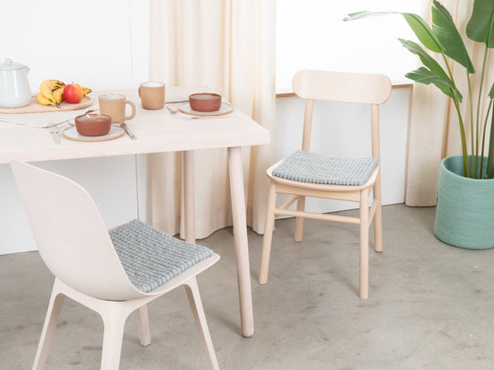 Il cuscino da sedia azzurro chiaro Liv porta calore e morbidezza sulla tua sedia preferita. Realizzato in pura lana vergine, fatto a mano in Nepal e prodotto in condizioni eque. I cuscini da sedia myfelt sono idrorepellenti e resistenti allo sporco e possono essere utilizzati su entrambi i lati.