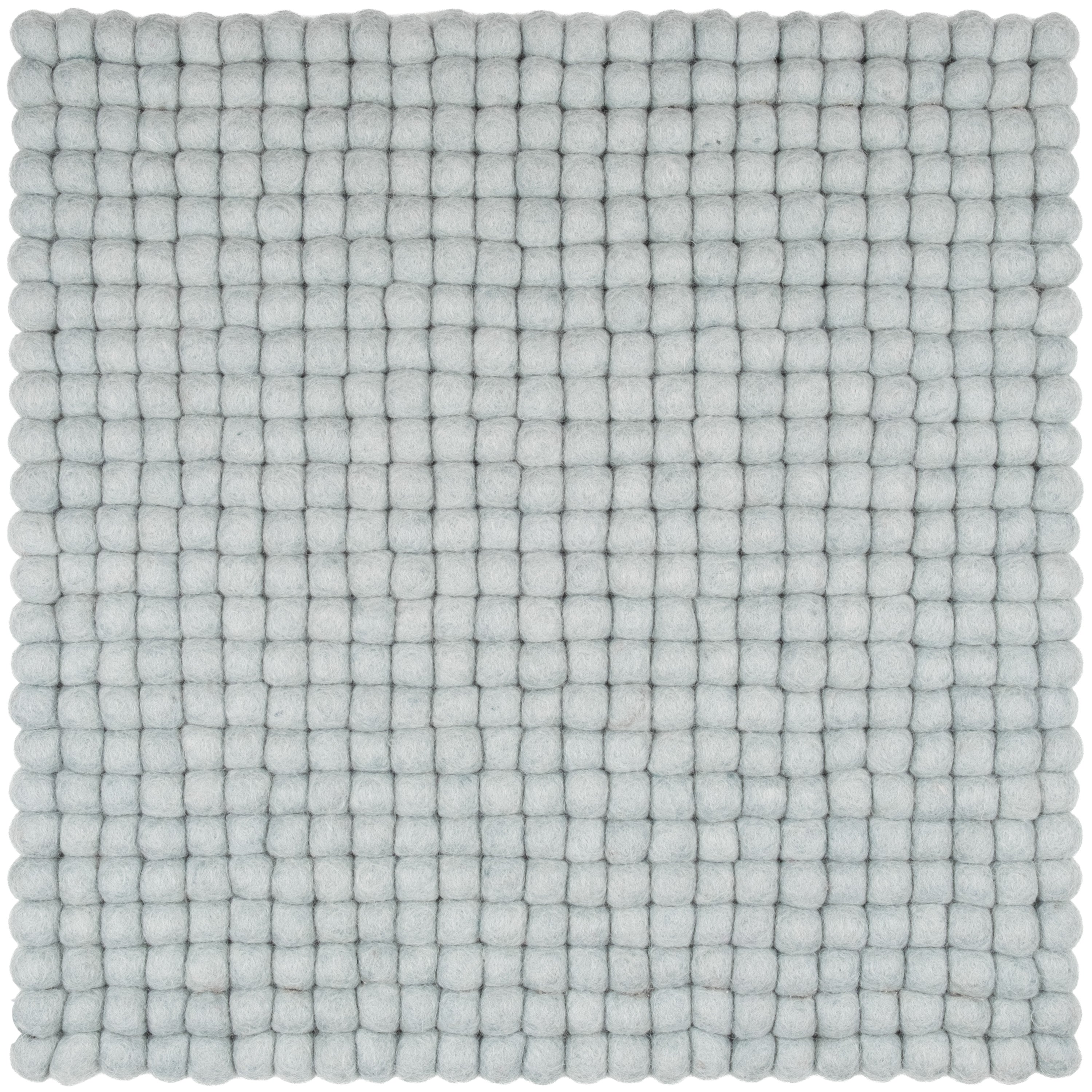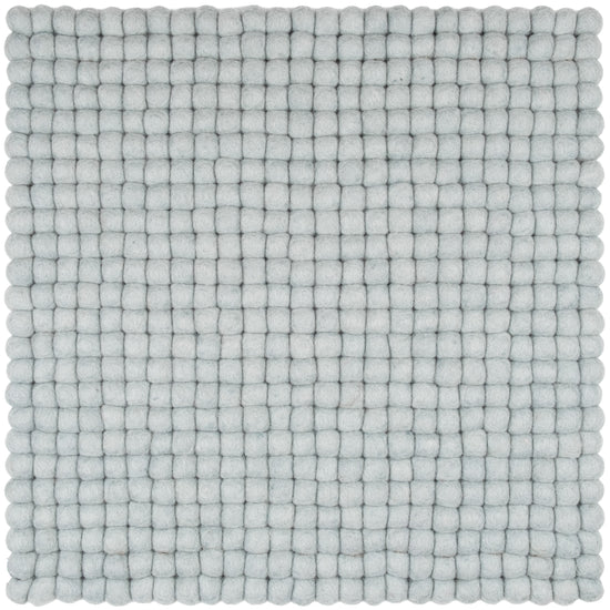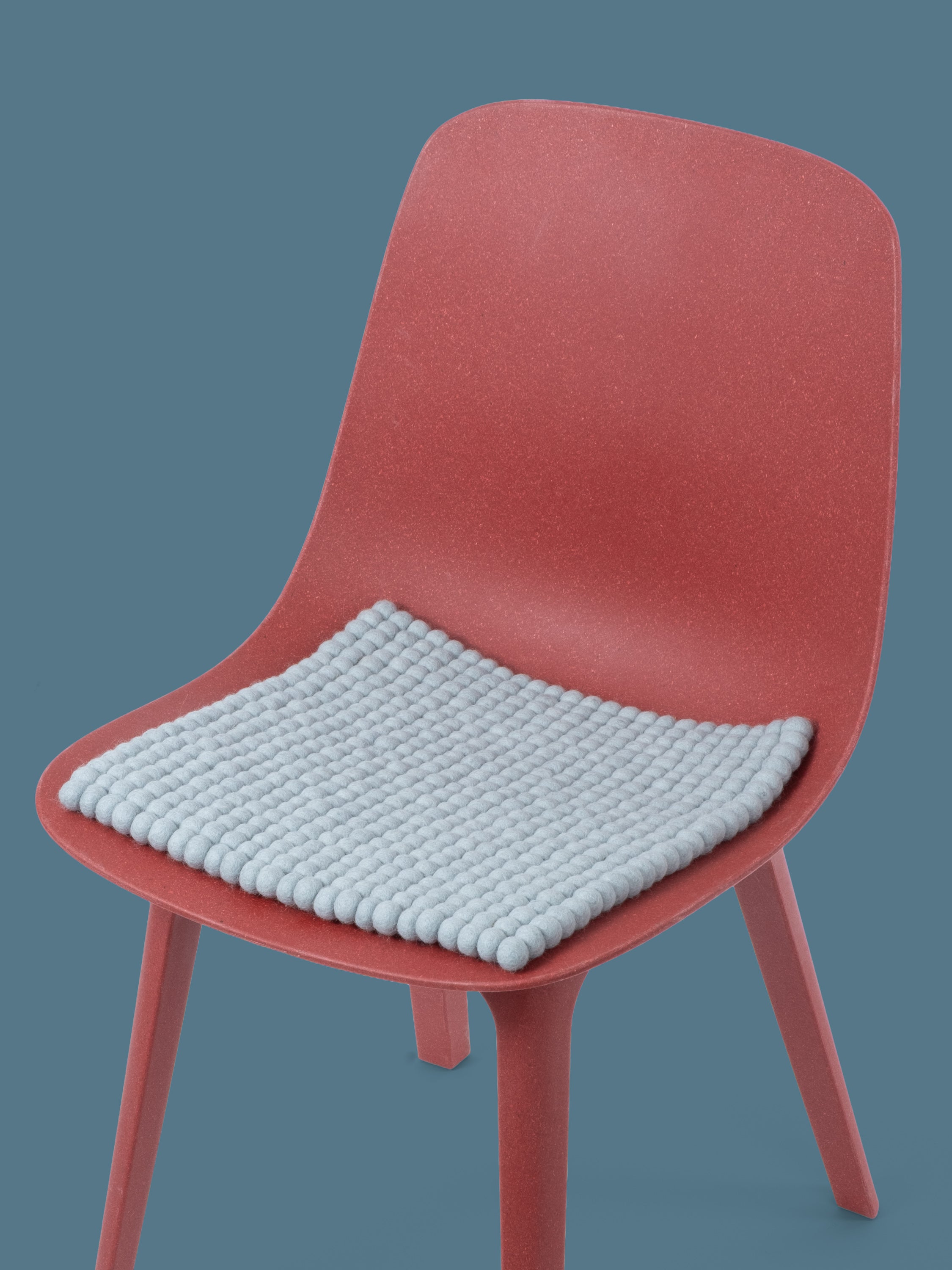 Quadratische, hellblaue Sitzauflage aus reiner Schurwolle.