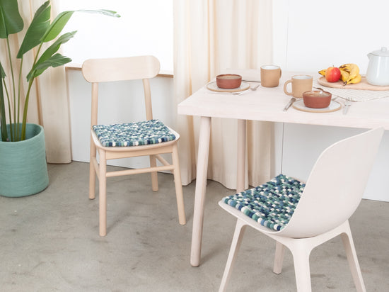 Il cuscino da sedia multicolore Mare porta calore e morbidezza sulla tua sedia preferita. Realizzato in pura lana vergine, fatto a mano in Nepal e prodotto in condizioni eque. I cuscini da sedia myfelt sono idrorepellenti e resistenti allo sporco e possono essere utilizzati su entrambi i lati.