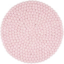 Runde, zartrosa Sitzauflage aus reiner Schurwolle.