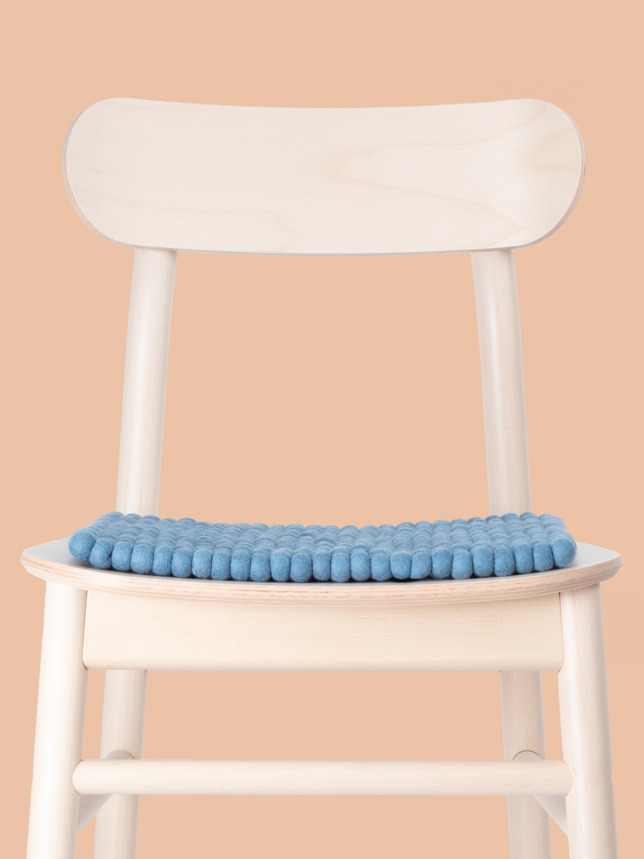 Il cuscino da sedia blu Nilo porta calore e morbidezza sulla tua sedia preferita. Realizzato in pura lana vergine, fatto a mano in Nepal e prodotto in condizioni eque. I cuscini da sedia myfelt sono idrorepellenti e resistenti allo sporco e possono essere utilizzati su entrambi i lati.