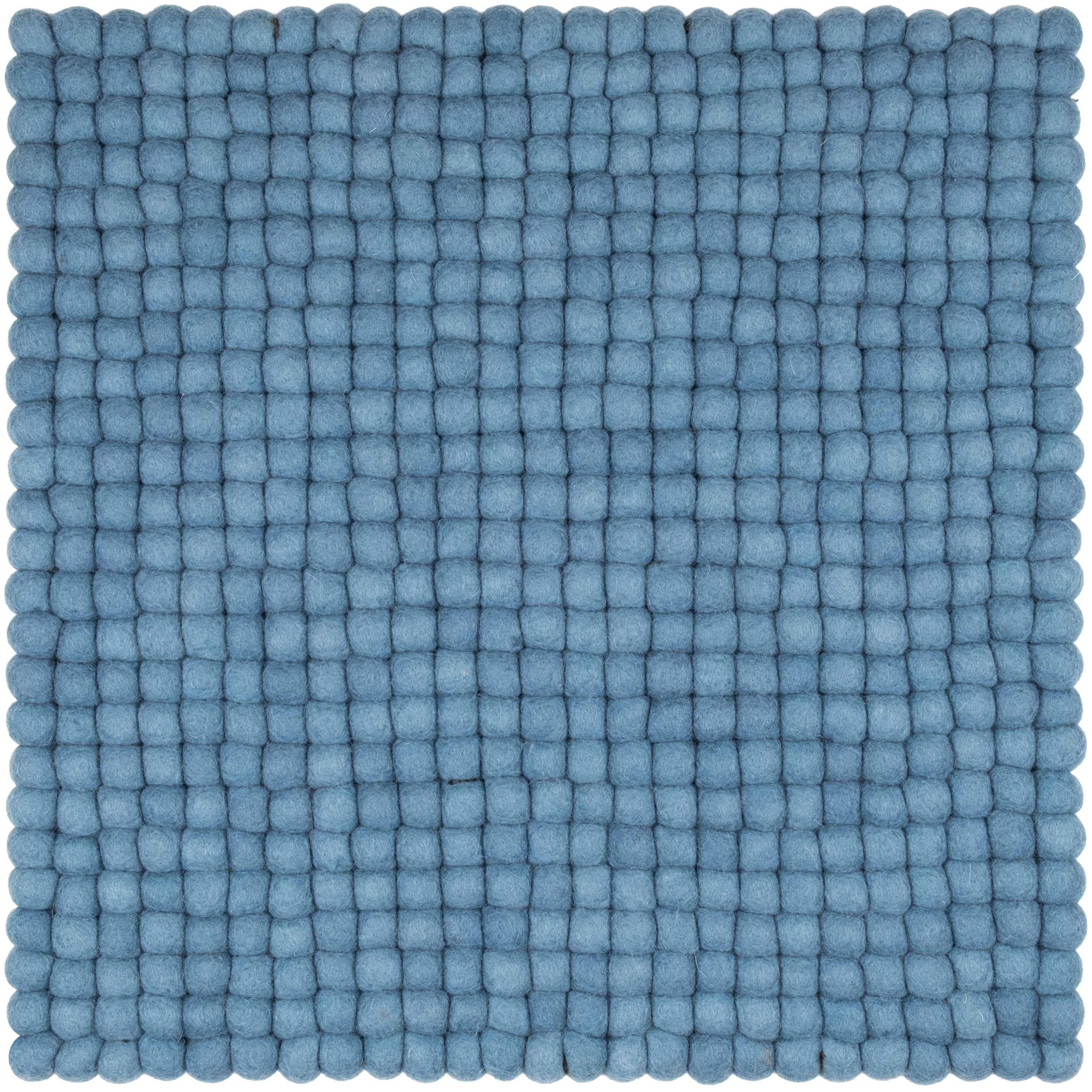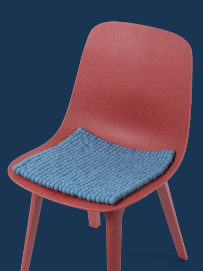 Quadratische, blaue Sitzauflage aus reiner Schurwolle.