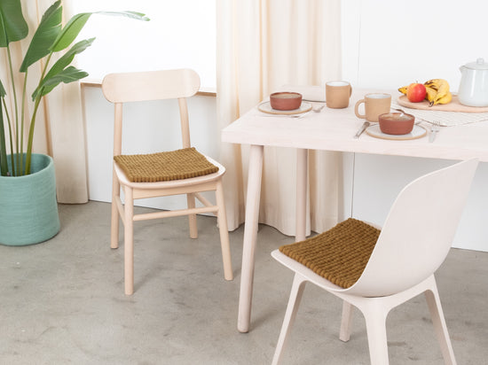 Il cuscino da sedia color caramello Omar porta calore e morbidezza sulla tua sedia preferita. Realizzato in pura lana vergine, fatto a mano in Nepal e prodotto in condizioni eque. I cuscini da sedia myfelt sono idrorepellenti e resistenti allo sporco e possono essere utilizzati su entrambi i lati.