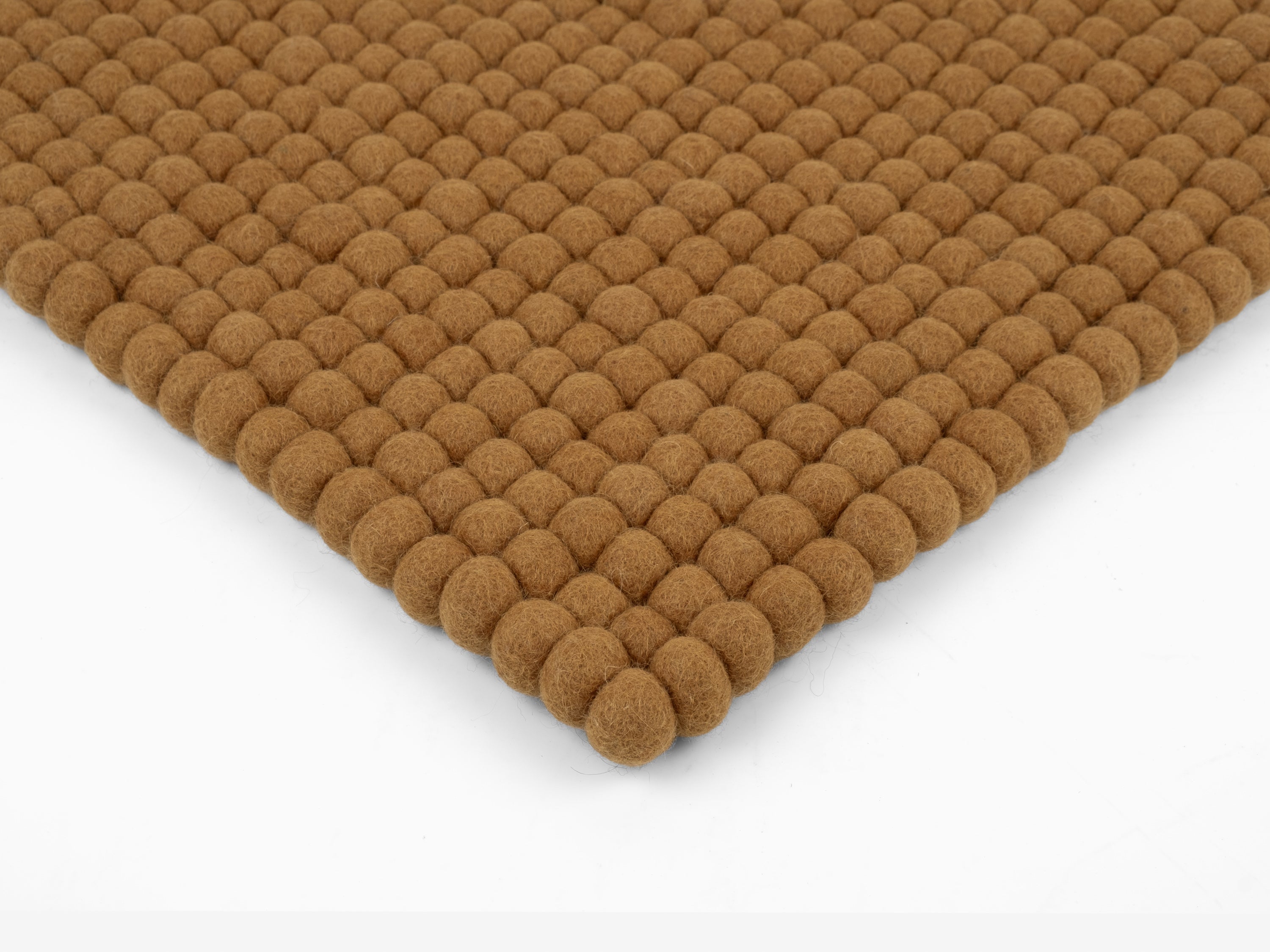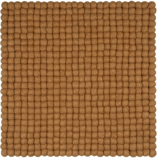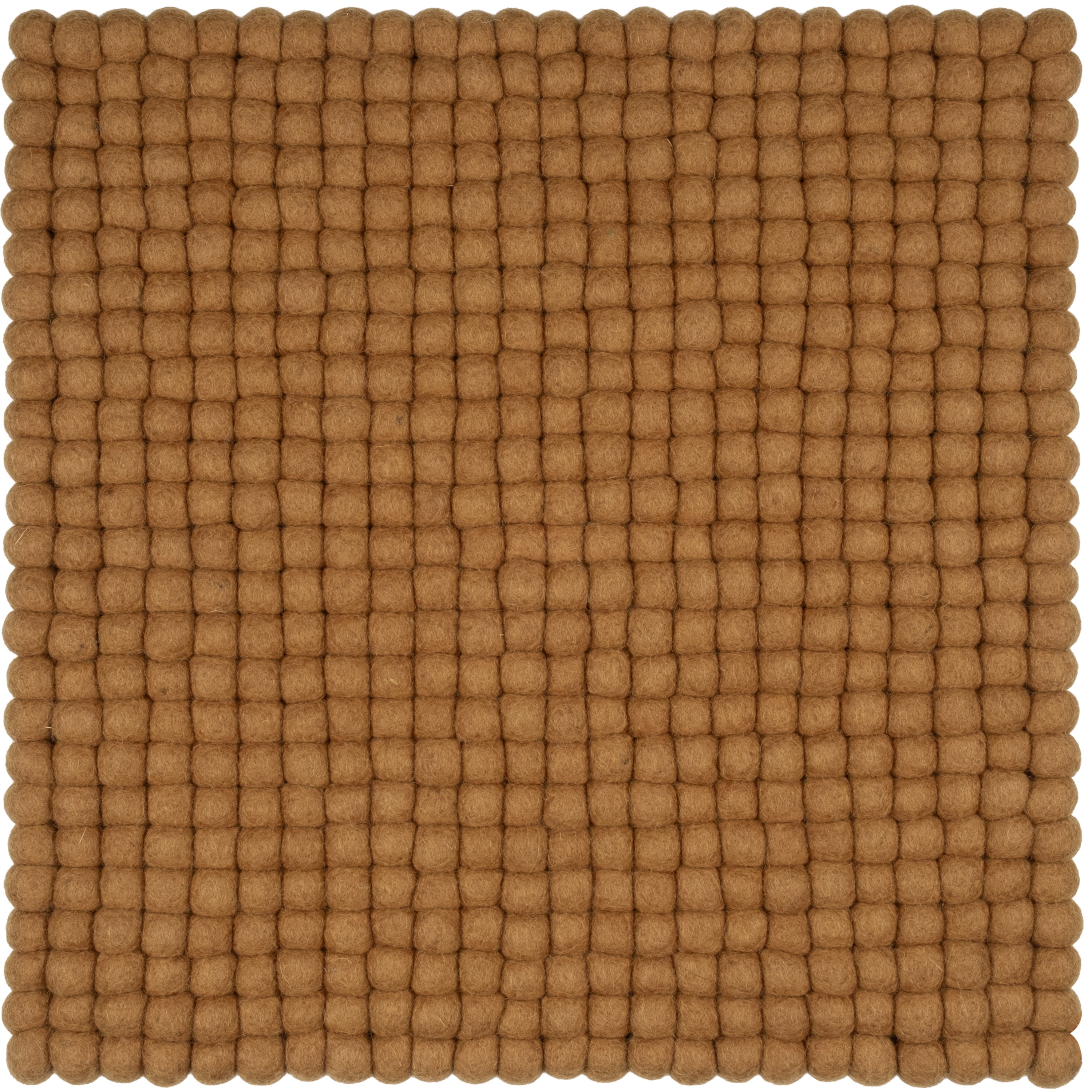 Quadratische, karamellfarbene Sitzauflage aus reiner Schurwolle.