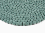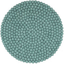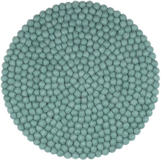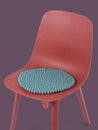 Runde, aquafarbene Sitzauflage aus reiner Schurwolle.