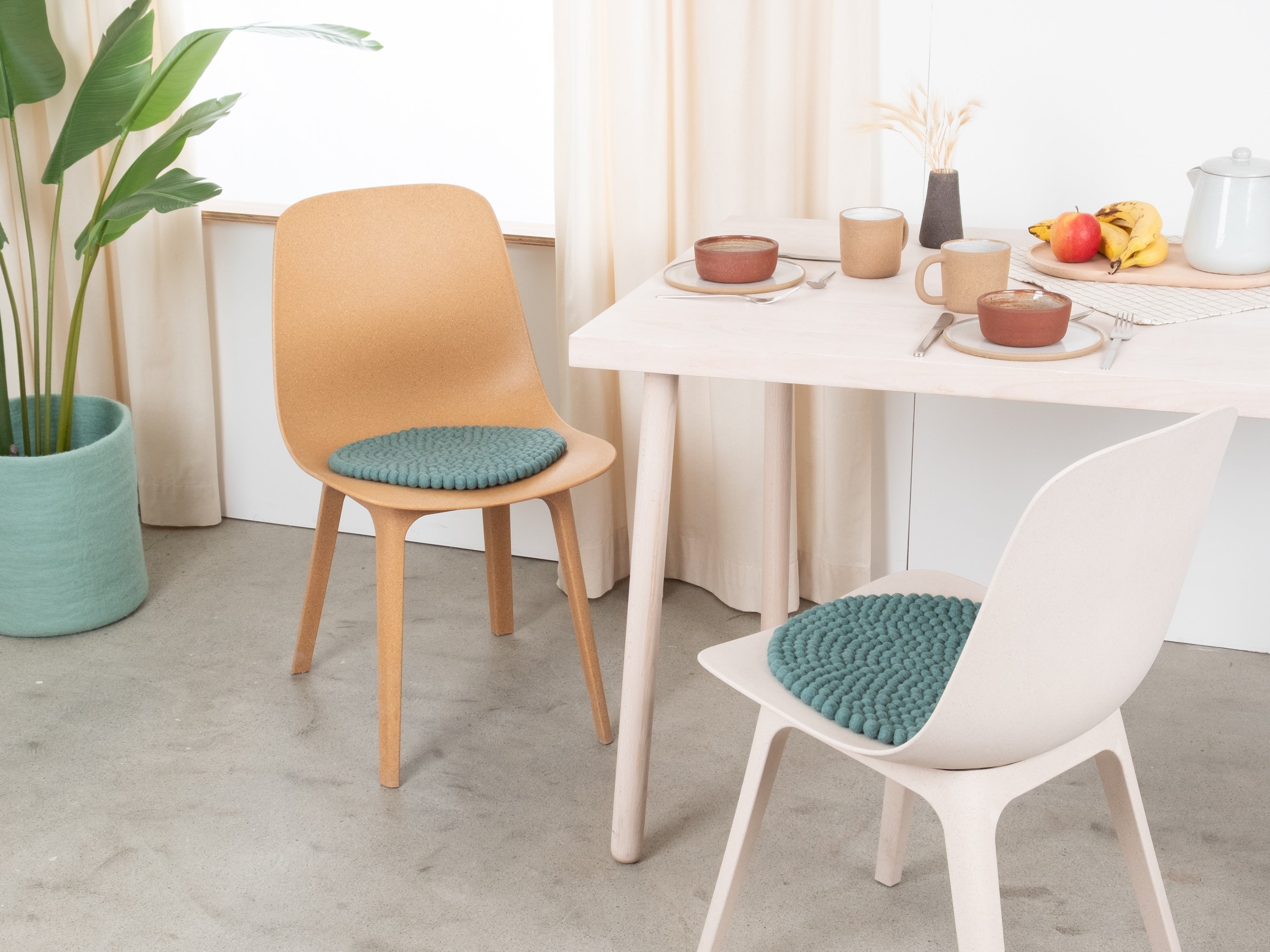 Il cuscino da sedia color turchese Taro porta calore e morbidezza sulla tua sedia preferita. Realizzato in pura lana vergine, fatto a mano in Nepal e prodotto in condizioni eque. I cuscini da sedia myfelt sono idrorepellenti e resistenti allo sporco e possono essere utilizzati su entrambi i lati.
