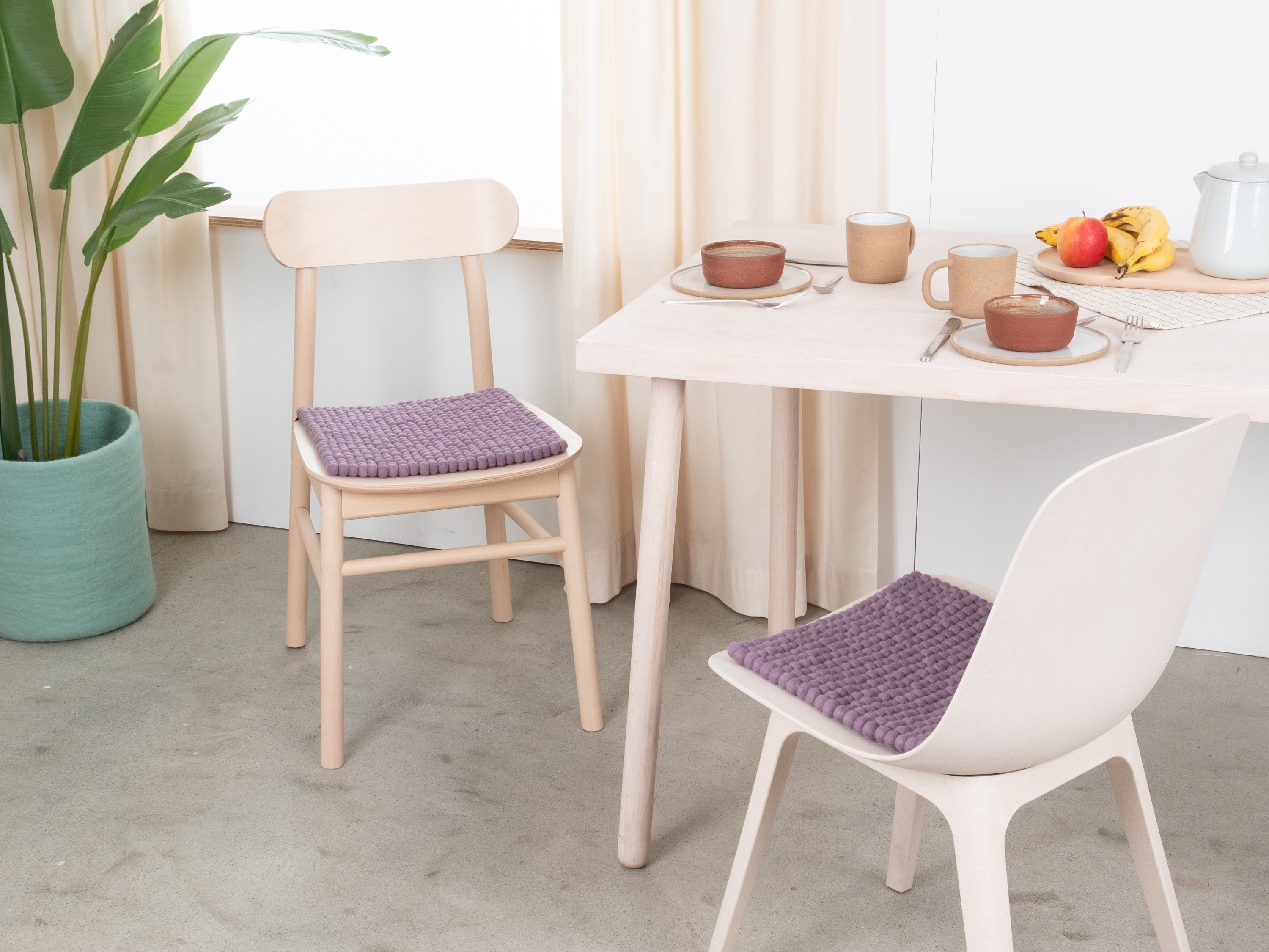 Il cuscino da sedia grigio lilla Tove porta calore e morbidezza sulla tua sedia preferita. Realizzato in pura lana vergine, fatto a mano in Nepal e prodotto in condizioni eque. I cuscini da sedia myfelt sono idrorepellenti e resistenti allo sporco e possono essere utilizzati su entrambi i lati.