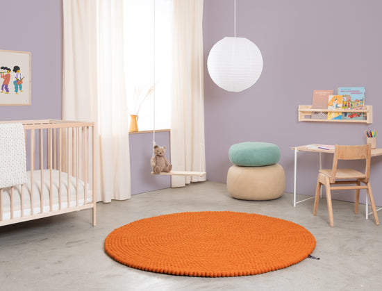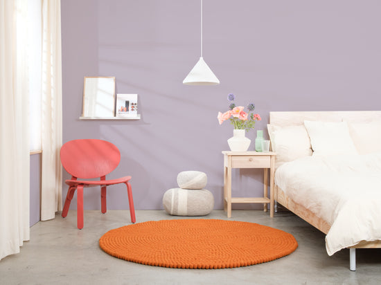 Afra porta in stanza un arancione caldo. Accogliente ed energico senza risultare appariscente. Perfetto per scaldare ambienti freddi o creare accenti. Robusto, facile da mantenere e piacevole sotto i piedi. Fatto a mano in Nepal – 100 % pura lana vergine.
