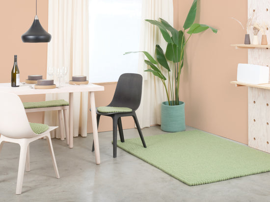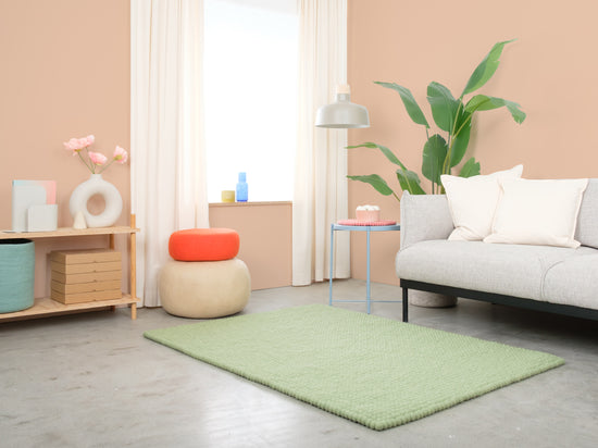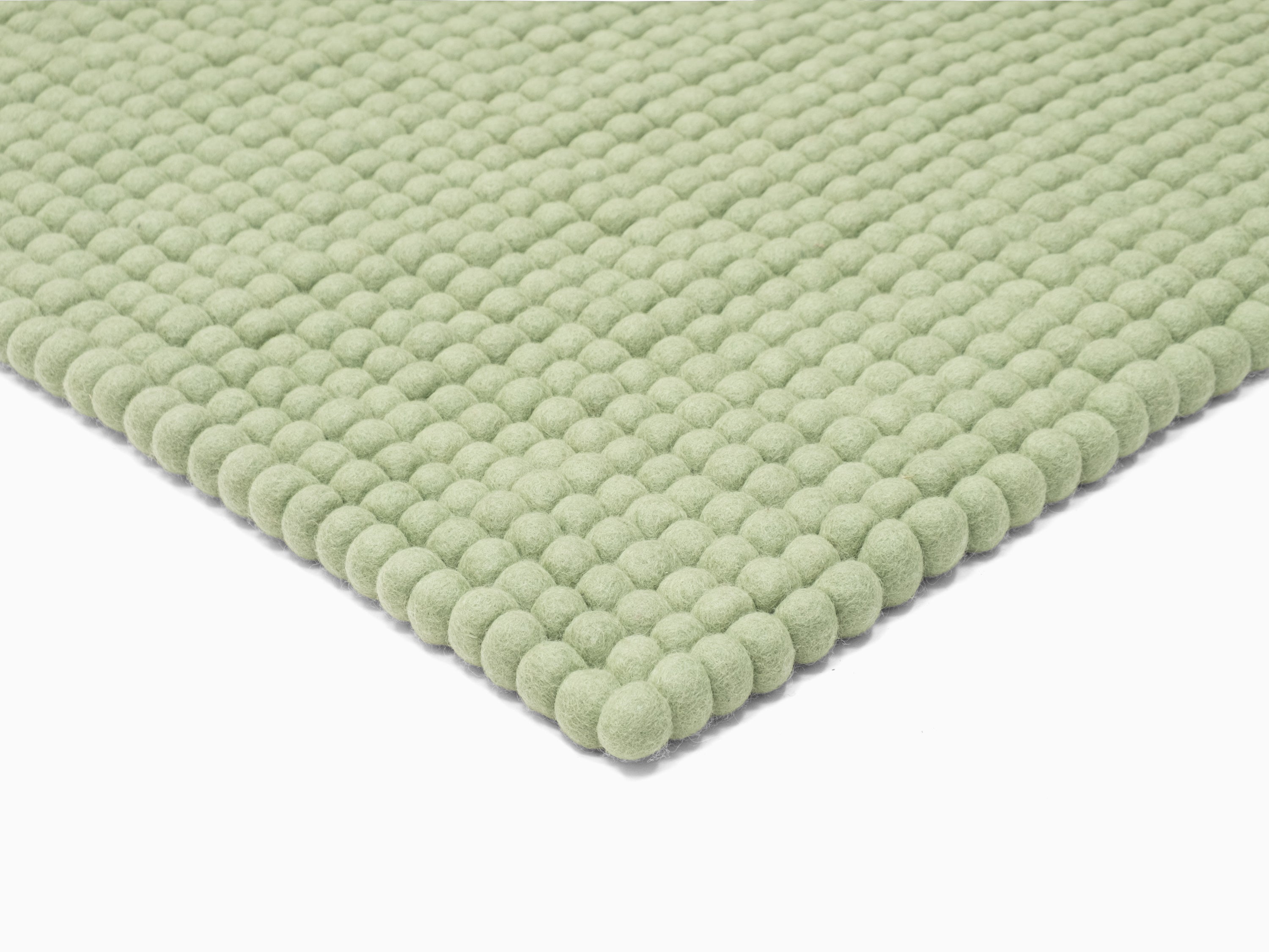 Lasse è un tappeto di palline di feltro in delicato verde salvia. Porta calma e leggerezza nella stanza e si abbina al legno, al bianco e ai toni naturali. Morbido al passo, resistente nell’uso quotidiano e naturalmente antimacchia. Realizzato a mano in Nepal con 100% pura lana vergine.