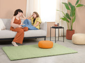 Tappeto rettangolare in palline di feltro, realizzato in pura lana vergine.