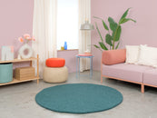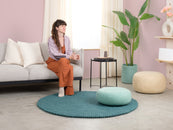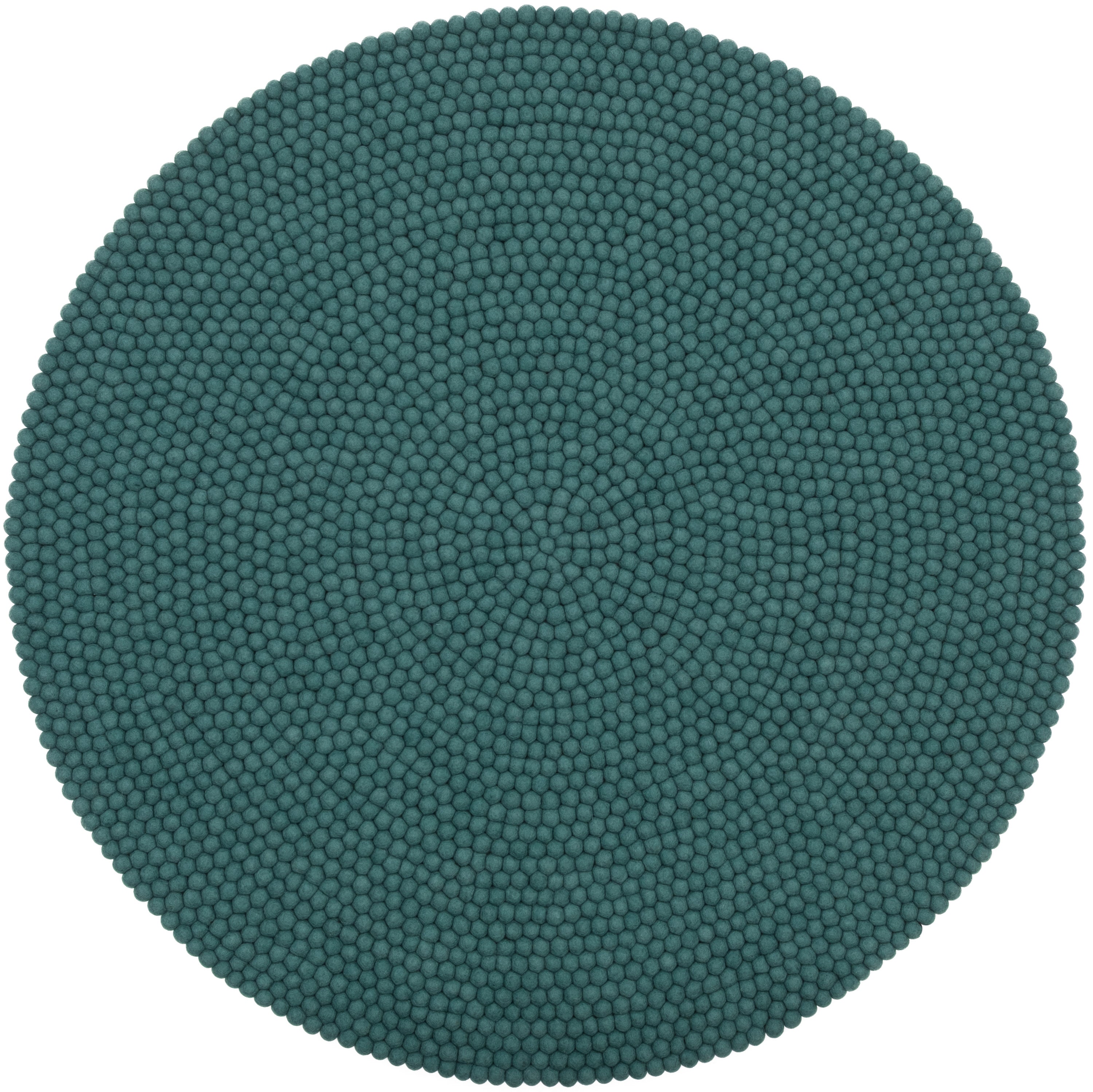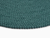 Tappeto rotondo in palline di feltro, realizzato in pura lana vergine.