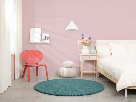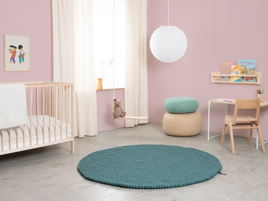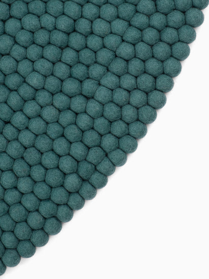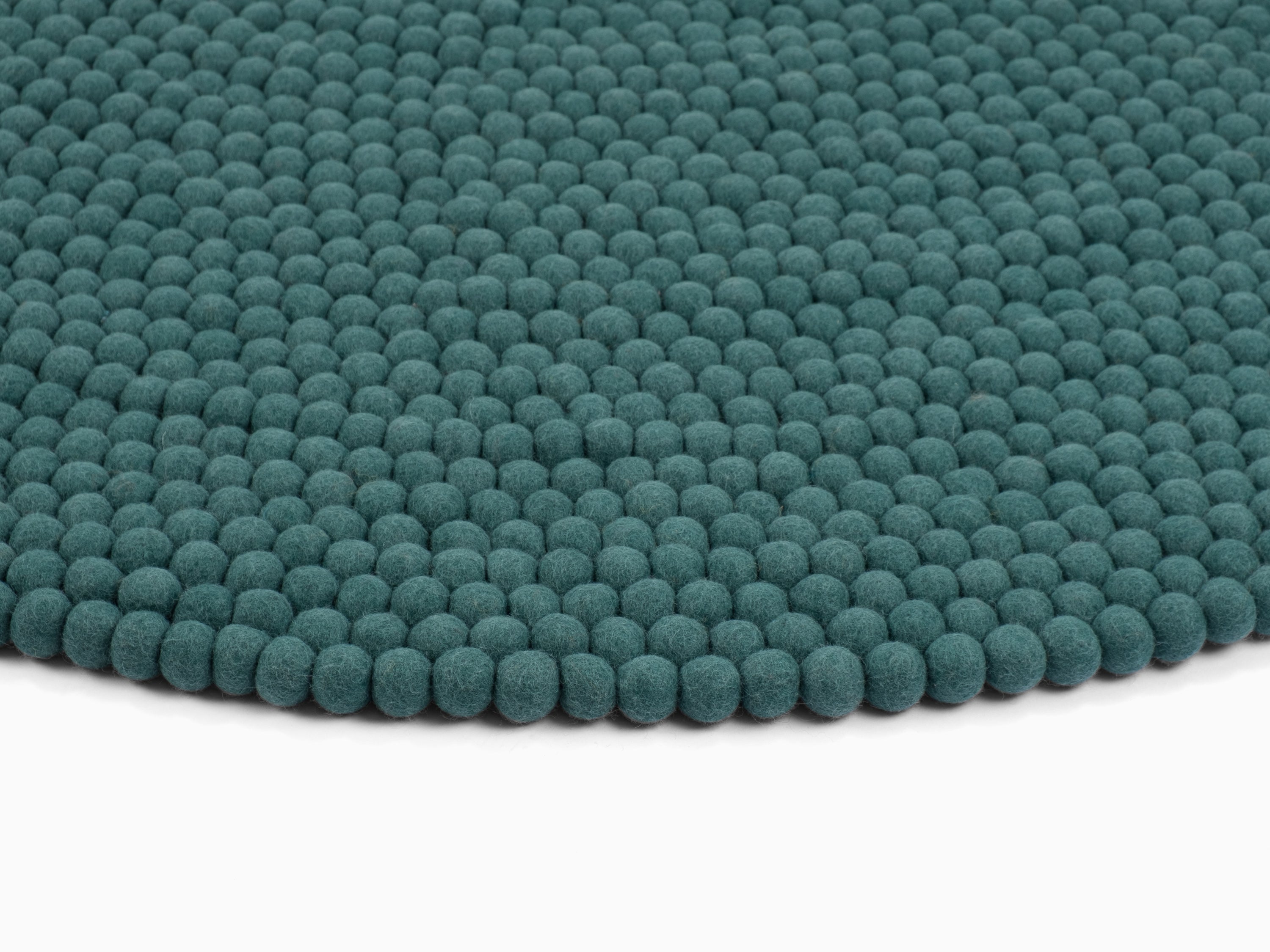 Noah è un tappeto di palline di feltro in un profondo color petrolio. Potente, chiaro e allo stesso tempo rilassante – come elemento di spicco o base tranquilla. Si abbina bene con legno chiaro, cemento e colori neutri. Morbido al tatto, durevole e facile da mantenere. Realizzato a mano in Nepal con 100% pura lana vergine.