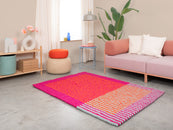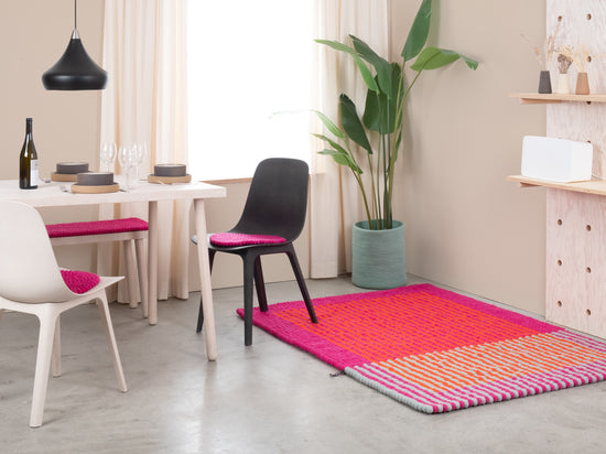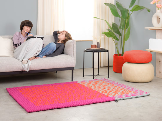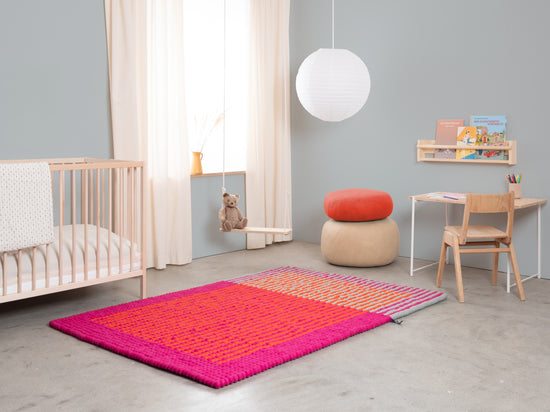 Tappeto rettangolare in feltro, realizzato in pura lana vergine.