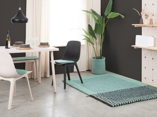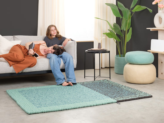 Toni freddi di blu si uniscono al grigio pietra, con un accenno di verde abete. Yukon richiama paesaggi silenziosi, laghi glaciali e il profondo blu del Nord. Un tappeto che trasmette chiarezza – e porta con sé calma. Per chi desidera liberare la mente.
