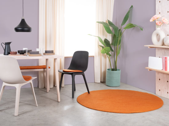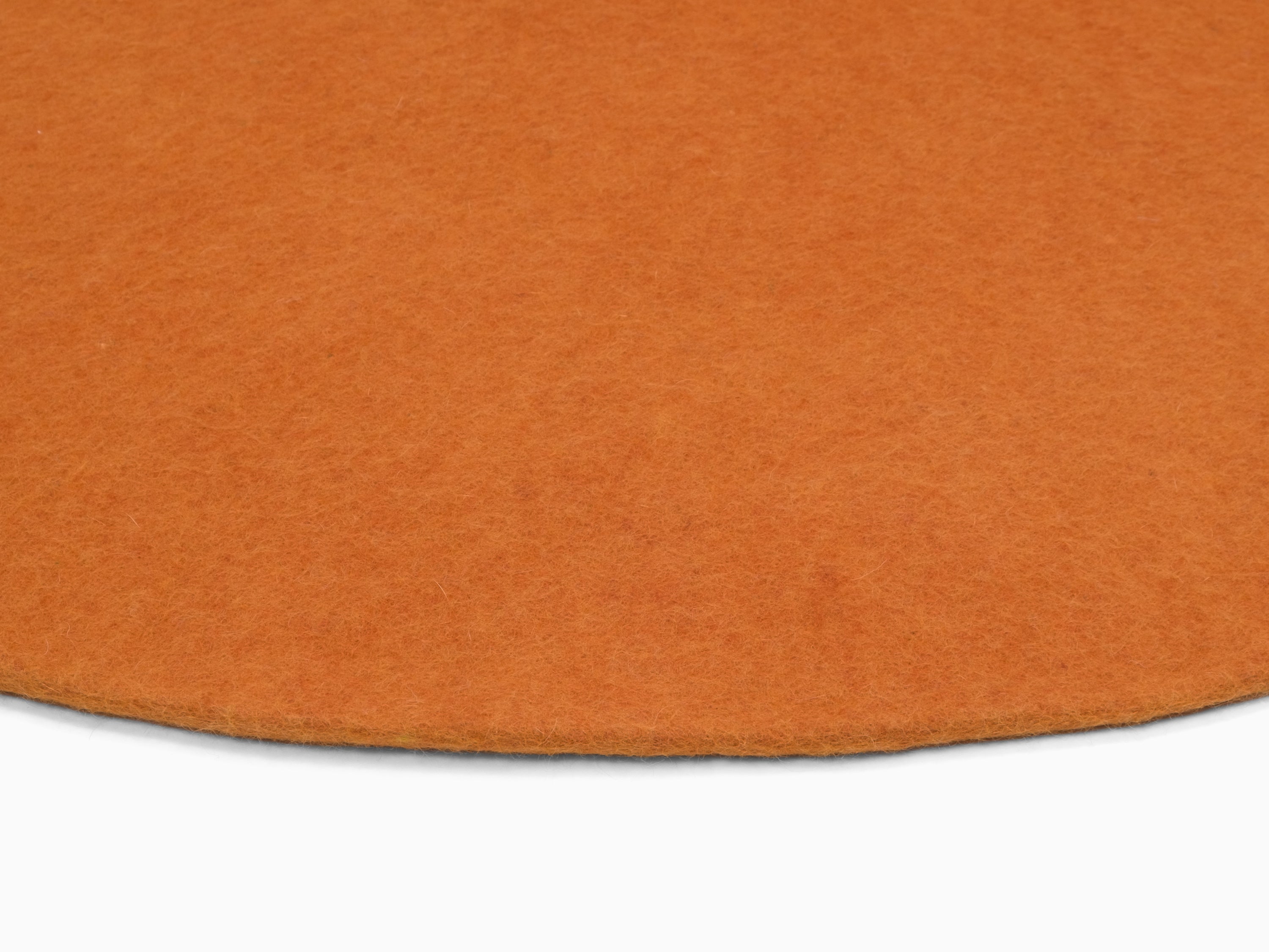Tappeto rotondo in feltro, realizzato in pura lana vergine.