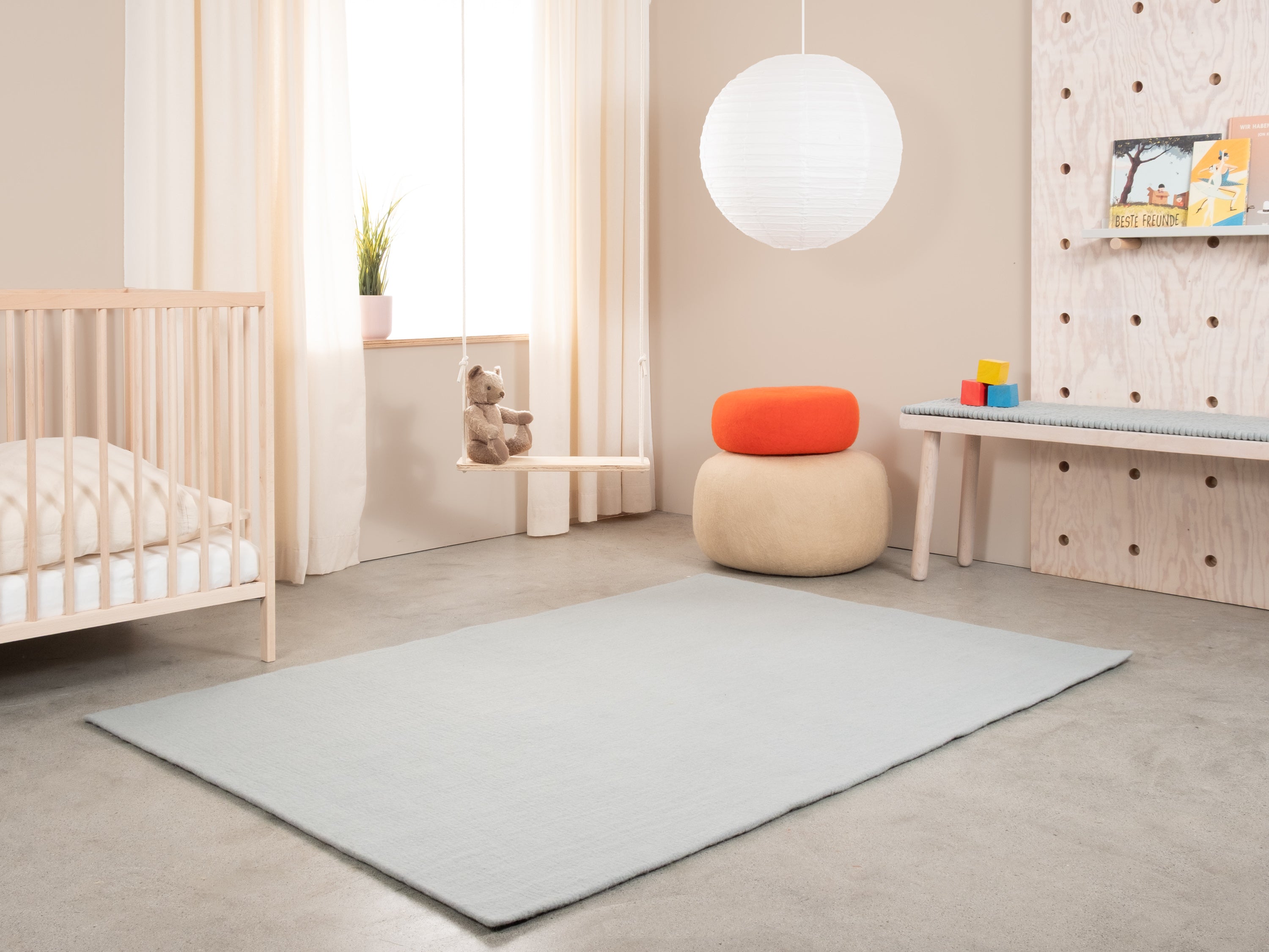 Liv è un tappeto in feltro in fresco azzurro chiaro. Porta chiarezza e leggerezza nella stanza e fa sembrare più grandi gli ambienti piccoli. Si abbina al bianco, al rovere e ai toni neutri – come base tranquilla o accento fresco. Morbido, fonoassorbente e naturalmente antimacchia. Realizzato a mano in Nepal con 100% pura lana vergine.