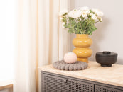 Il sottopentola Kian nel colore grigio unisce funzionalità ed estetica accattivante. Robusto, resistente al calore, idrorepellente e antimacchia, e utilizzabile su entrambi i lati. Realizzato in pura lana vergine, fatto a mano in Nepal in condizioni eque.