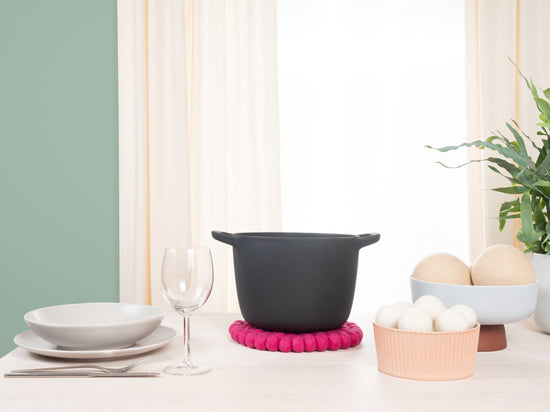 Il sottopentola Lilli nel colore rosa unisce funzionalità ed estetica accattivante. Robusto, resistente al calore, idrorepellente e antimacchia, e utilizzabile su entrambi i lati. Realizzato in pura lana vergine, fatto a mano in Nepal in condizioni eque.