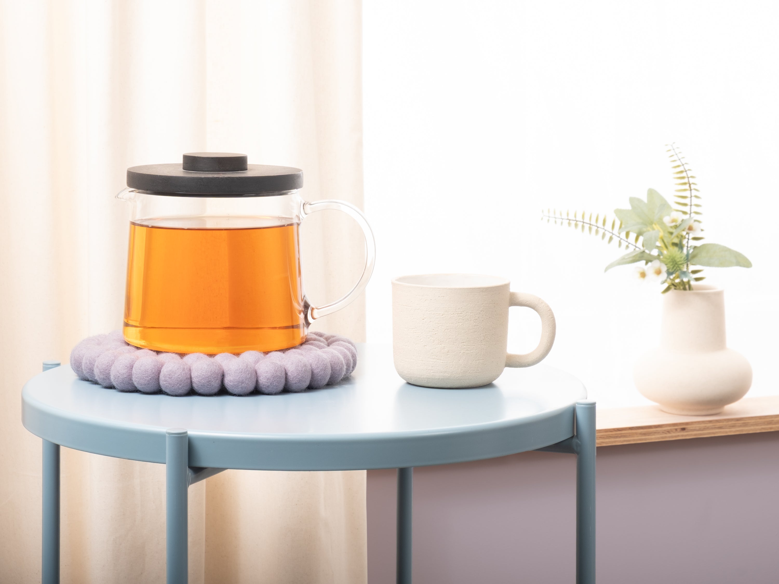 Il sottopentola Marla nel colore viola chiaro unisce funzionalità ed estetica accattivante. Robusto, resistente al calore, idrorepellente e antimacchia, e utilizzabile su entrambi i lati. Realizzato in pura lana vergine, fatto a mano in Nepal in condizioni eque.