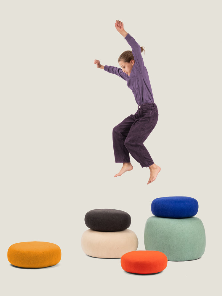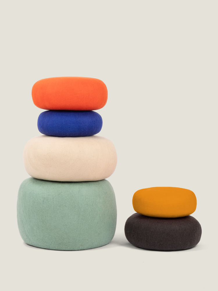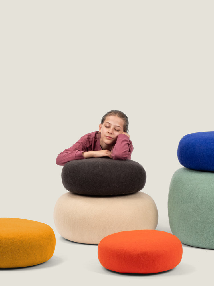 Pouf colorato realizzato in pura lana vergine al 100%.