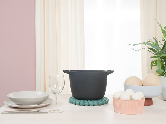 Il sottopentola Taro nel colore acqua unisce funzionalità ed estetica accattivante. Robusto, resistente al calore, idrorepellente e antimacchia, e utilizzabile su entrambi i lati. Realizzato in pura lana vergine, fatto a mano in Nepal in condizioni eque.