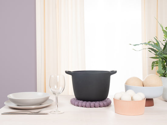 Sottopentola rotondo grigio-lilla in pura lana vergine | myfelt