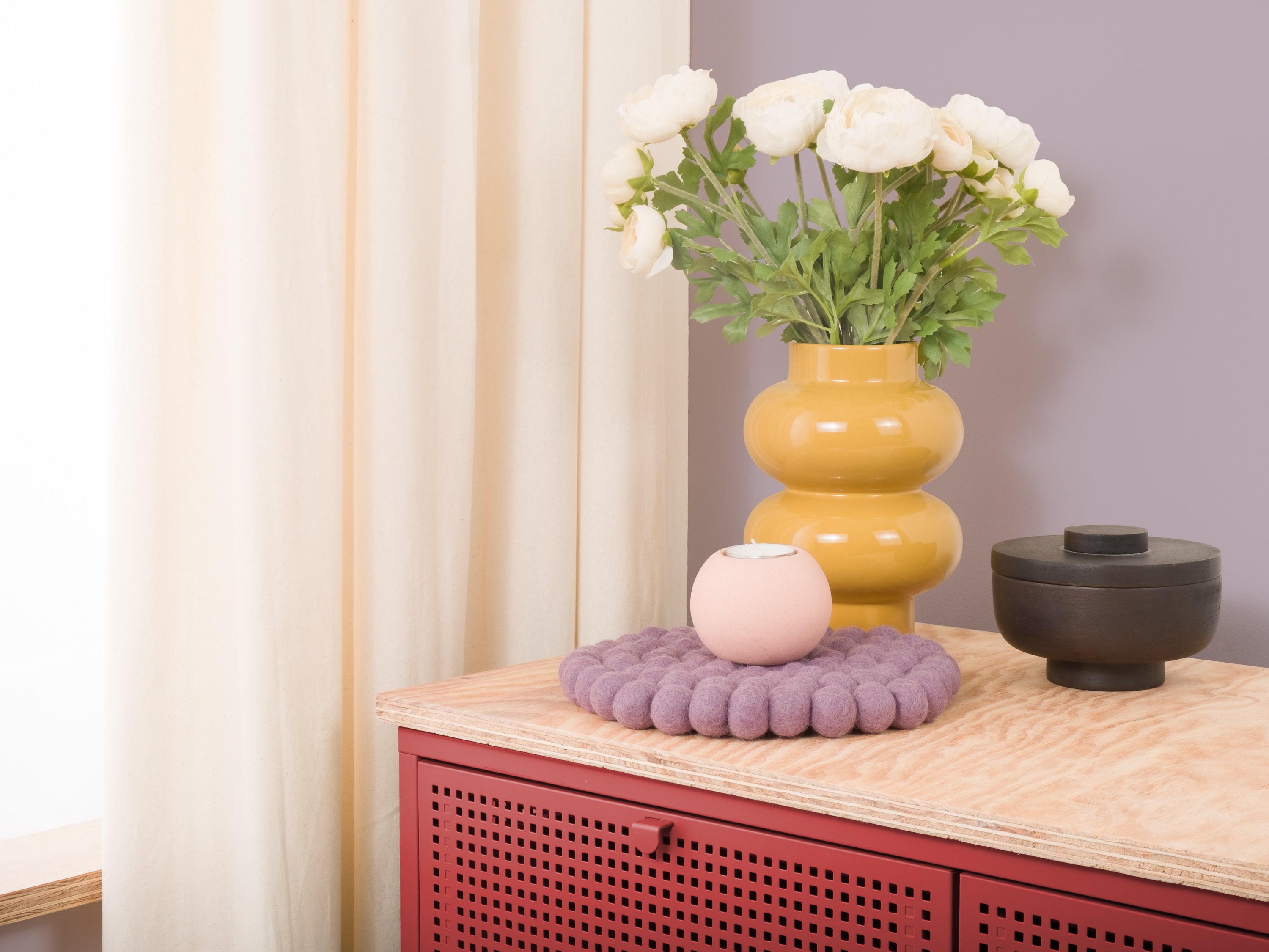 Il sottopentola Tove nel colore lilla-grigio unisce funzionalità ed estetica accattivante. Robusto, resistente al calore, idrorepellente e antimacchia, e utilizzabile su entrambi i lati. Realizzato in pura lana vergine, fatto a mano in Nepal in condizioni eque.